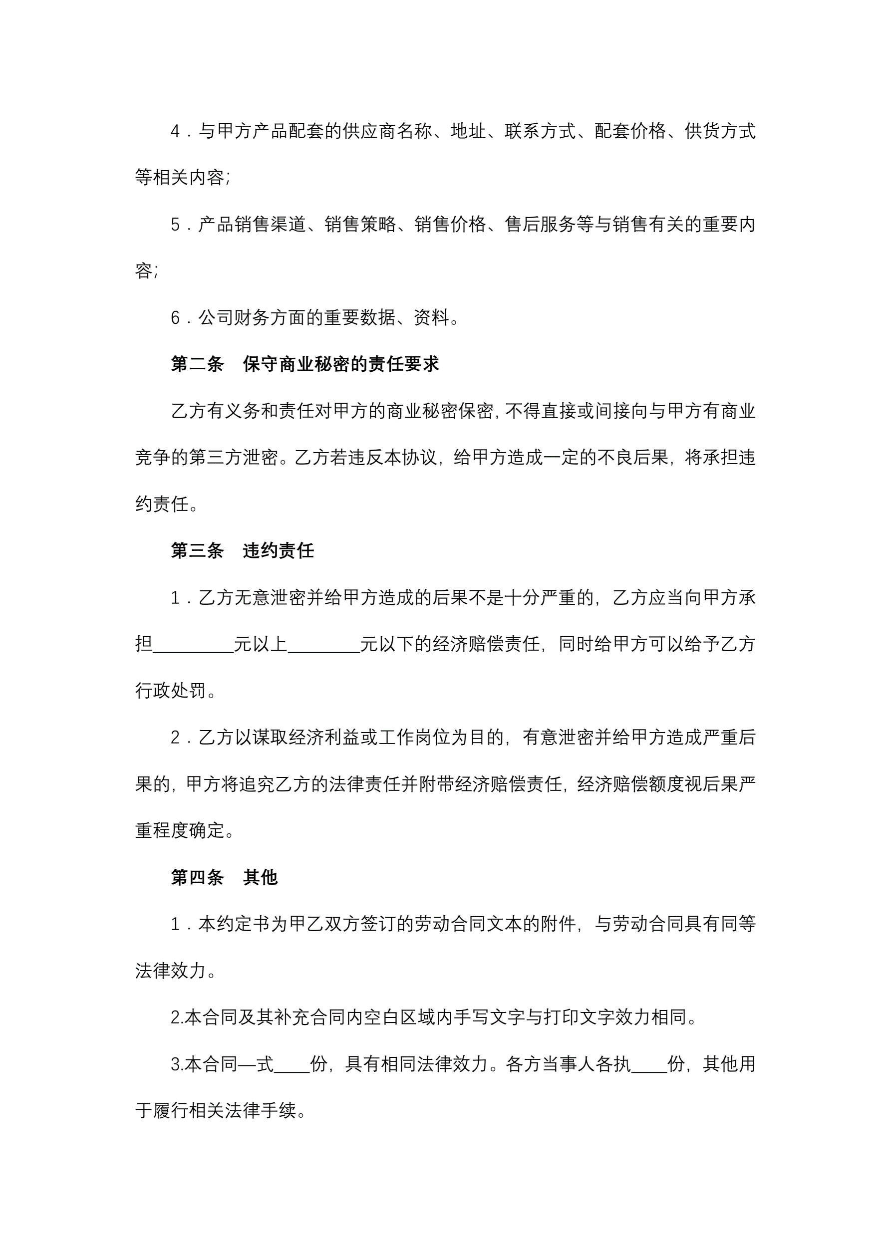 >保守商业秘密约定书
