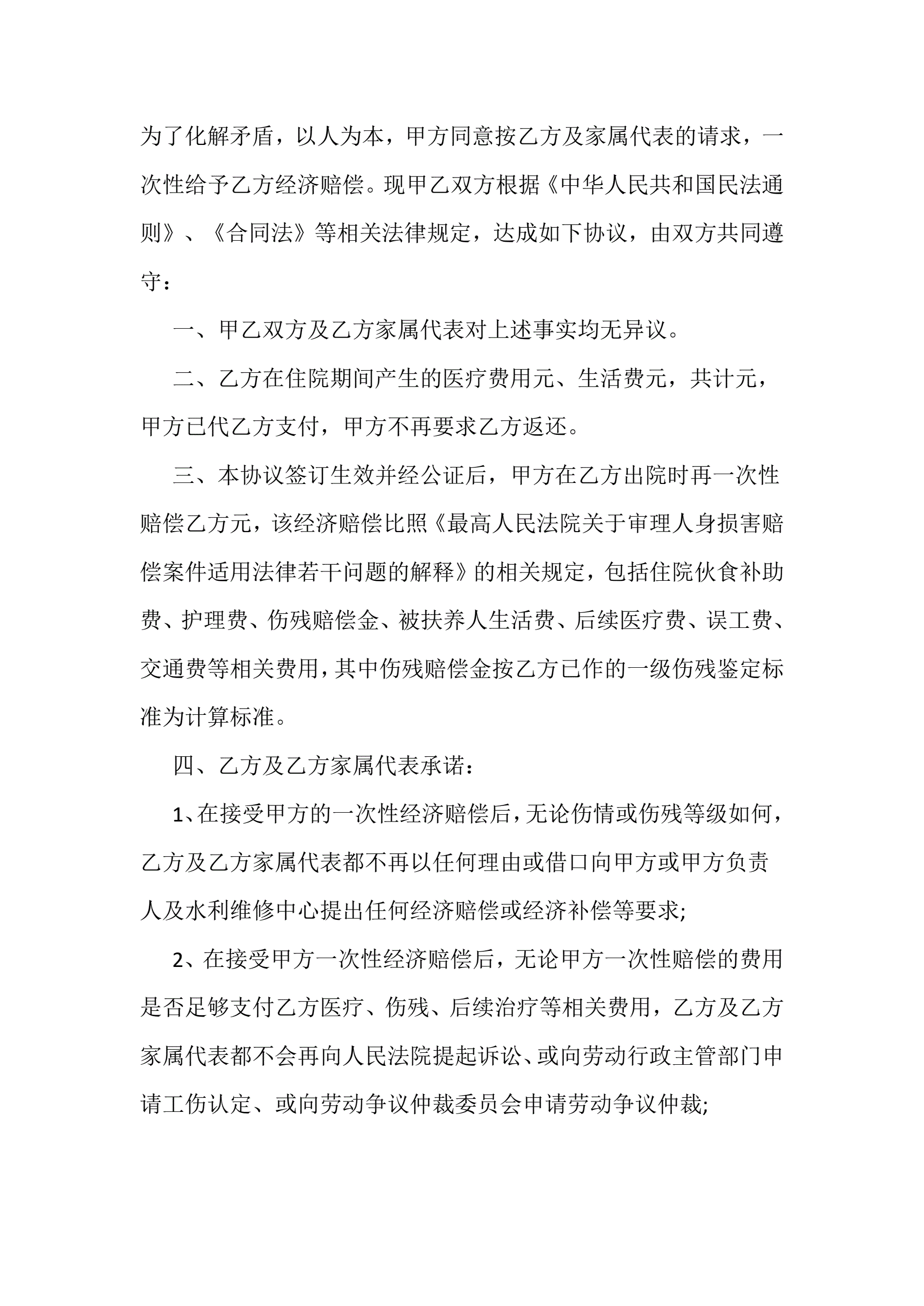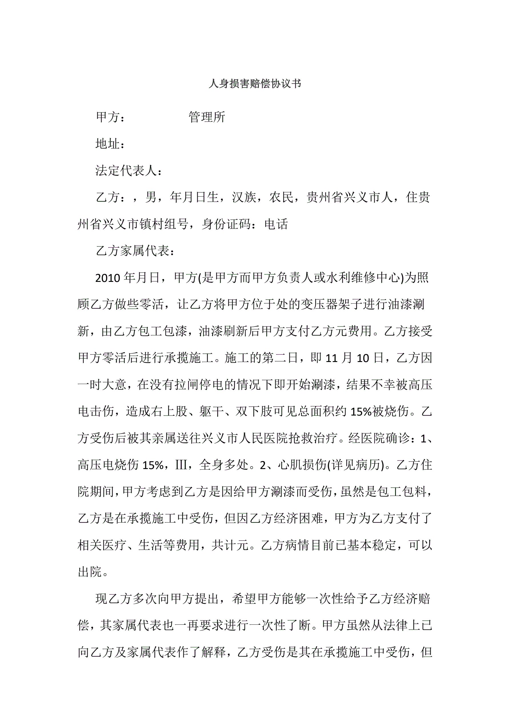 人身损害赔偿协议书