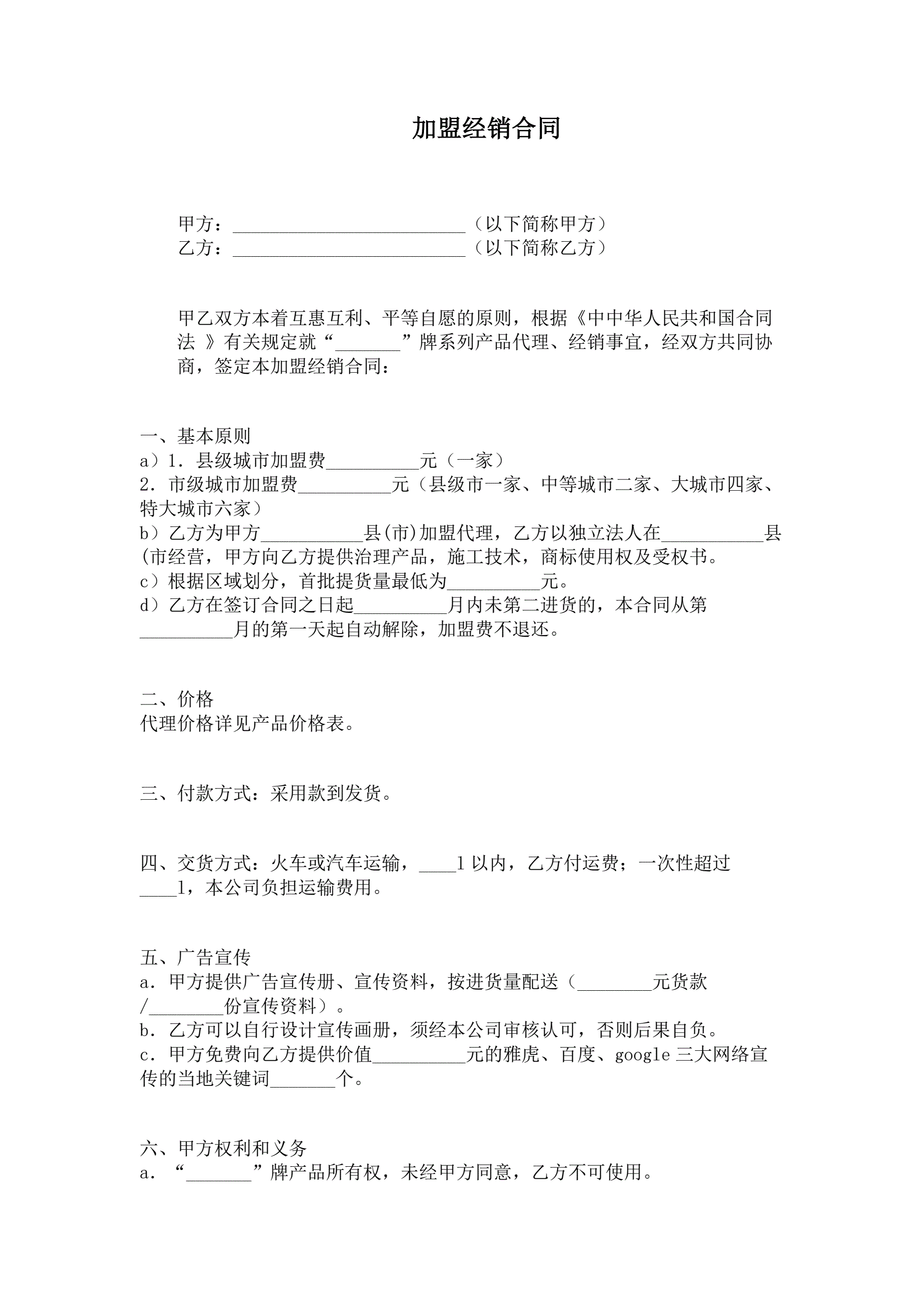>加盟经销合同
