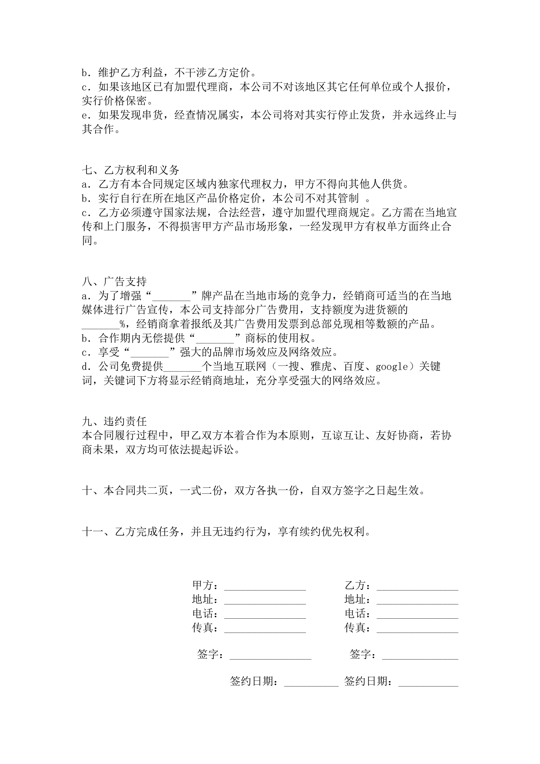 加盟经销合同