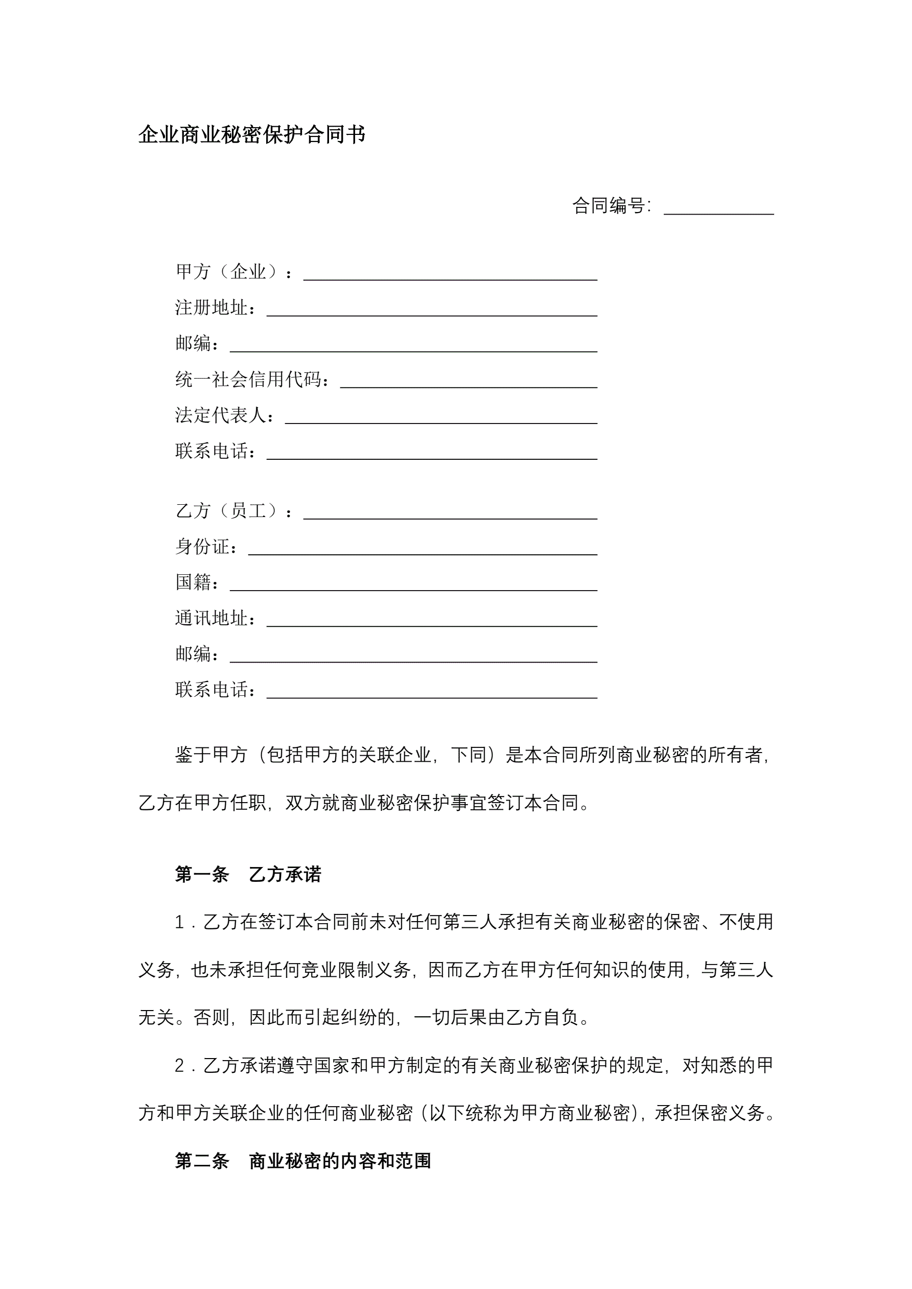 企业商业秘密保护合同书