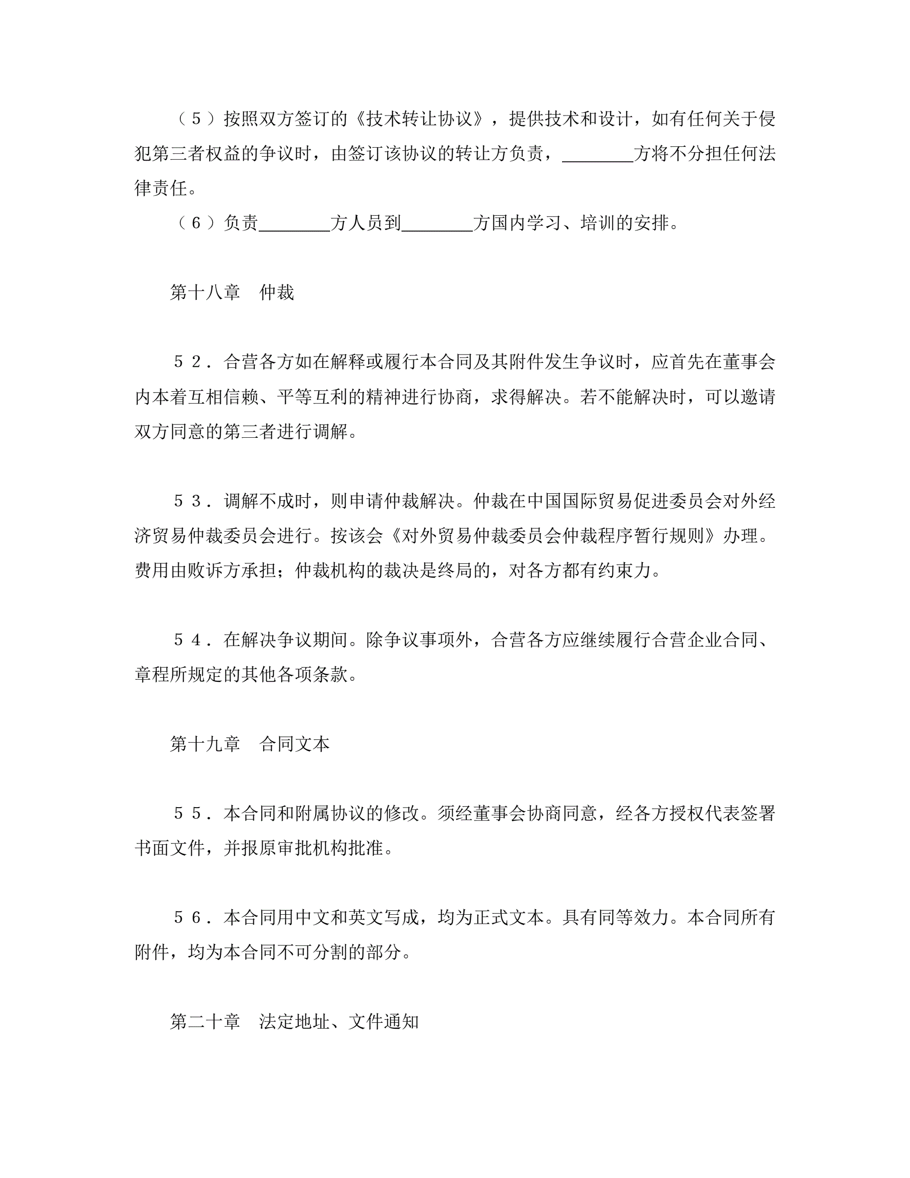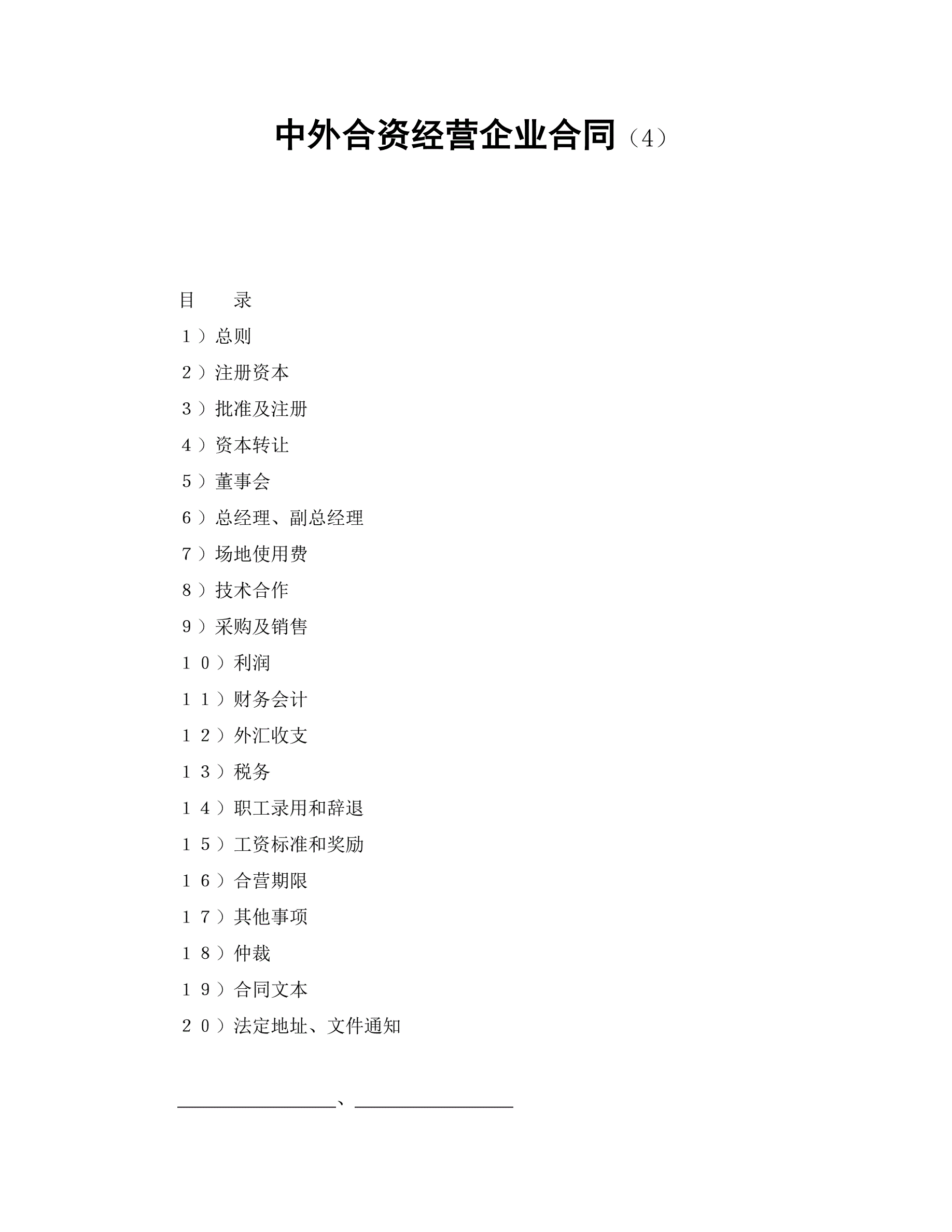 >中外合资经营企业合同(4)