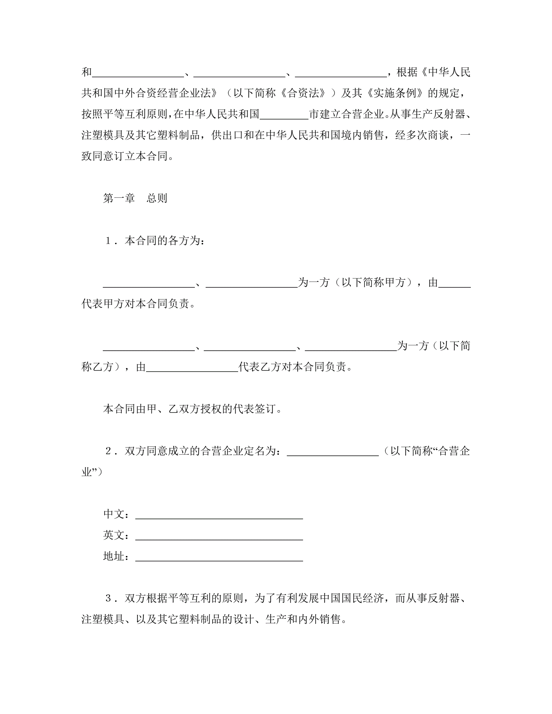 中外合资经营企业合同(4)