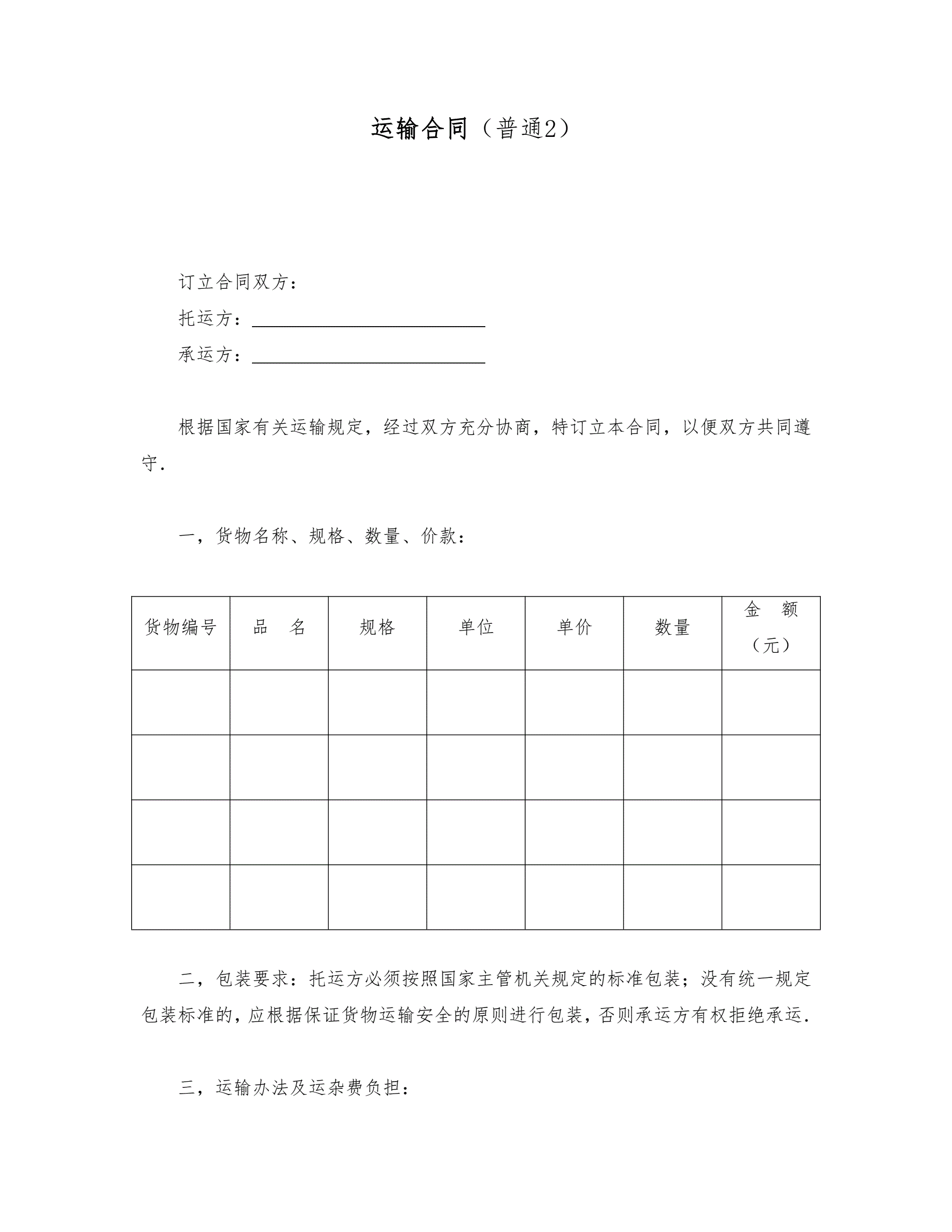 >运输合同(普通2)