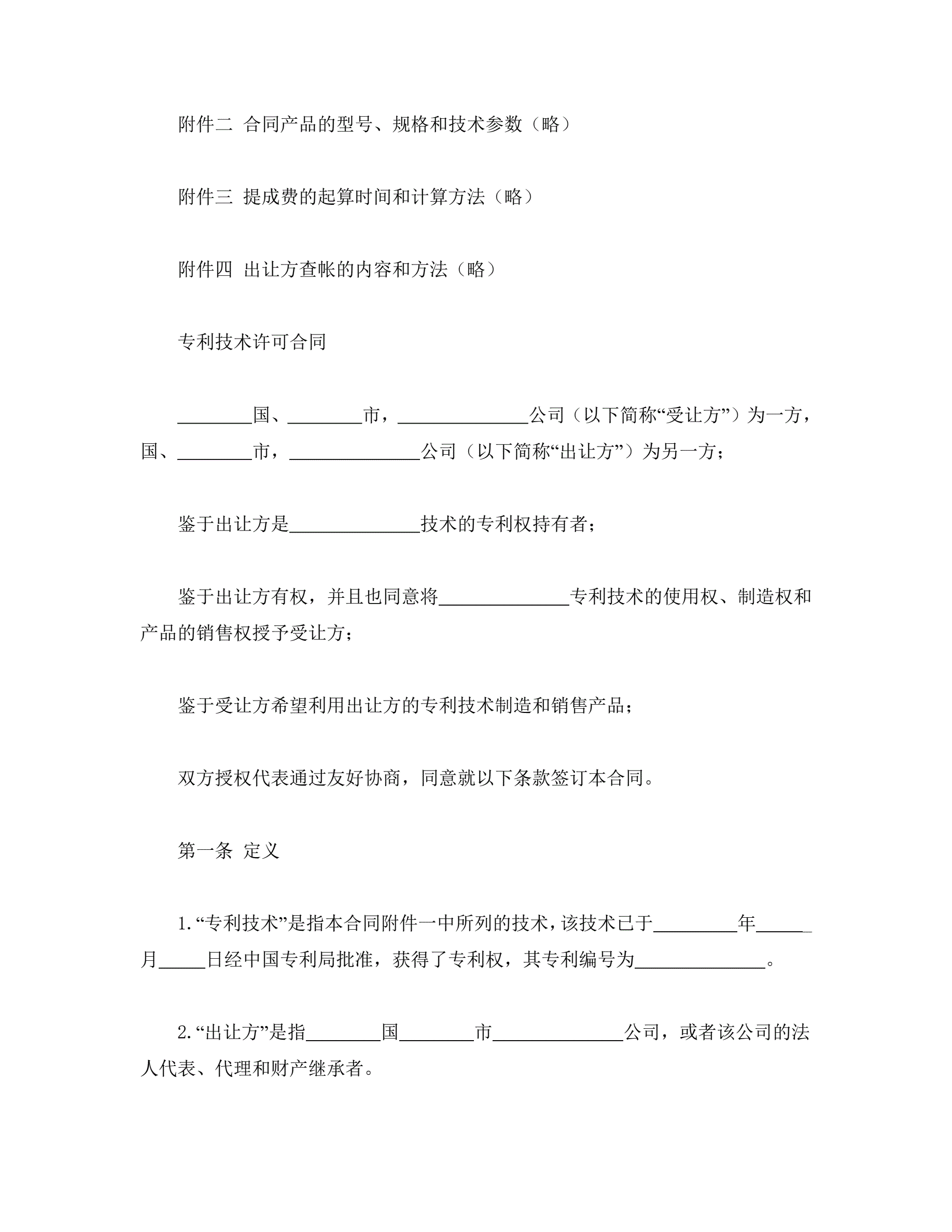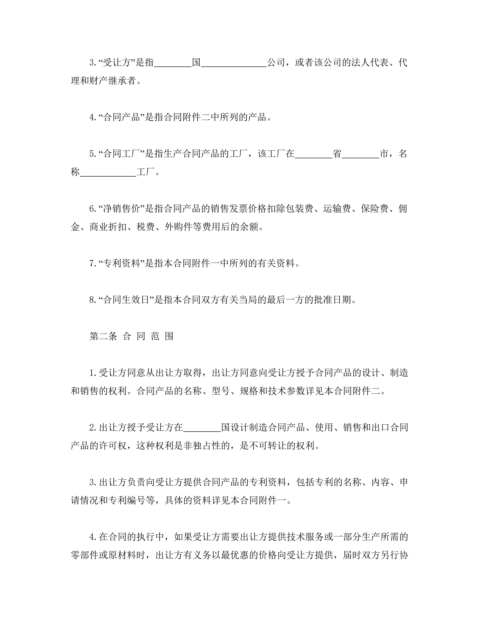 >国际专利技术许可合同