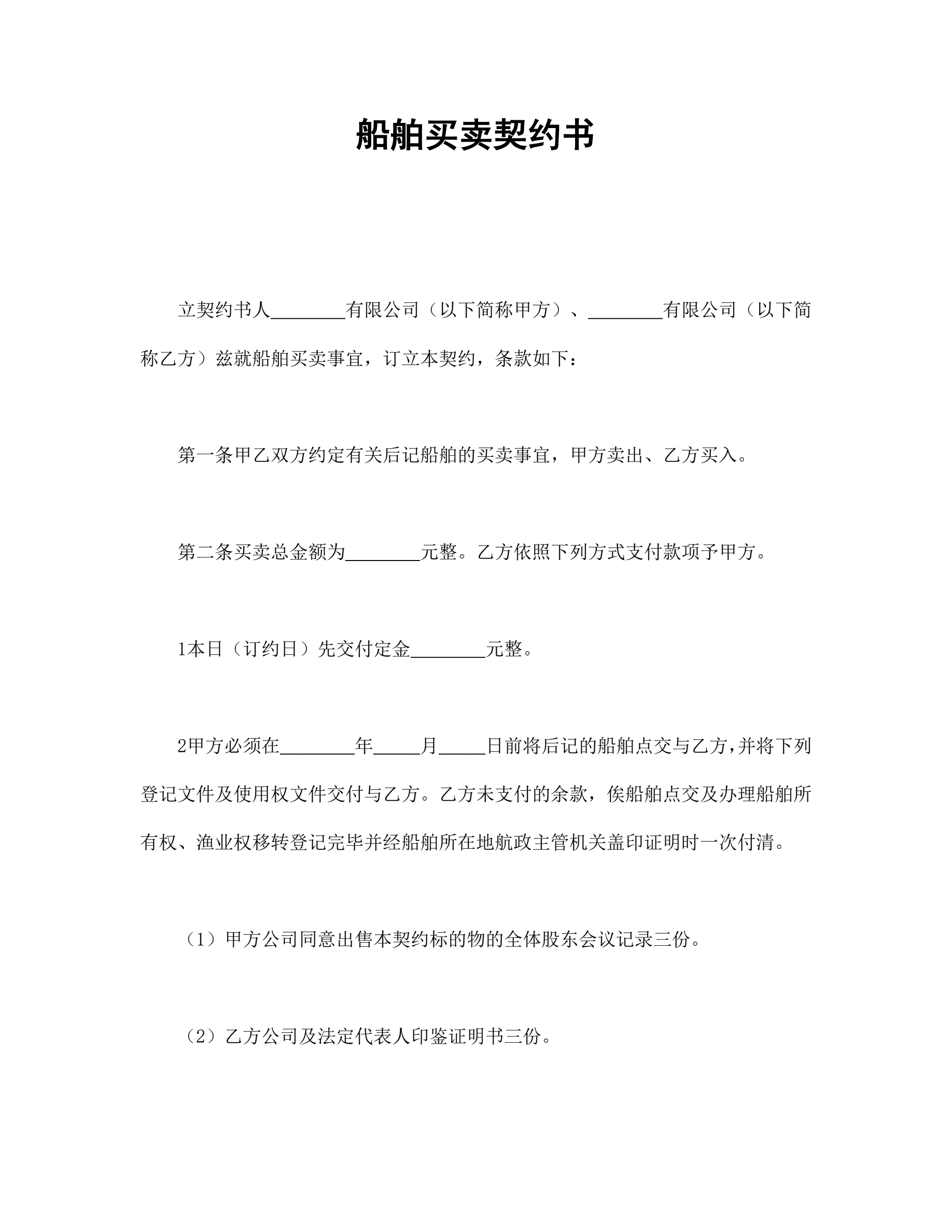 船舶买卖契约书