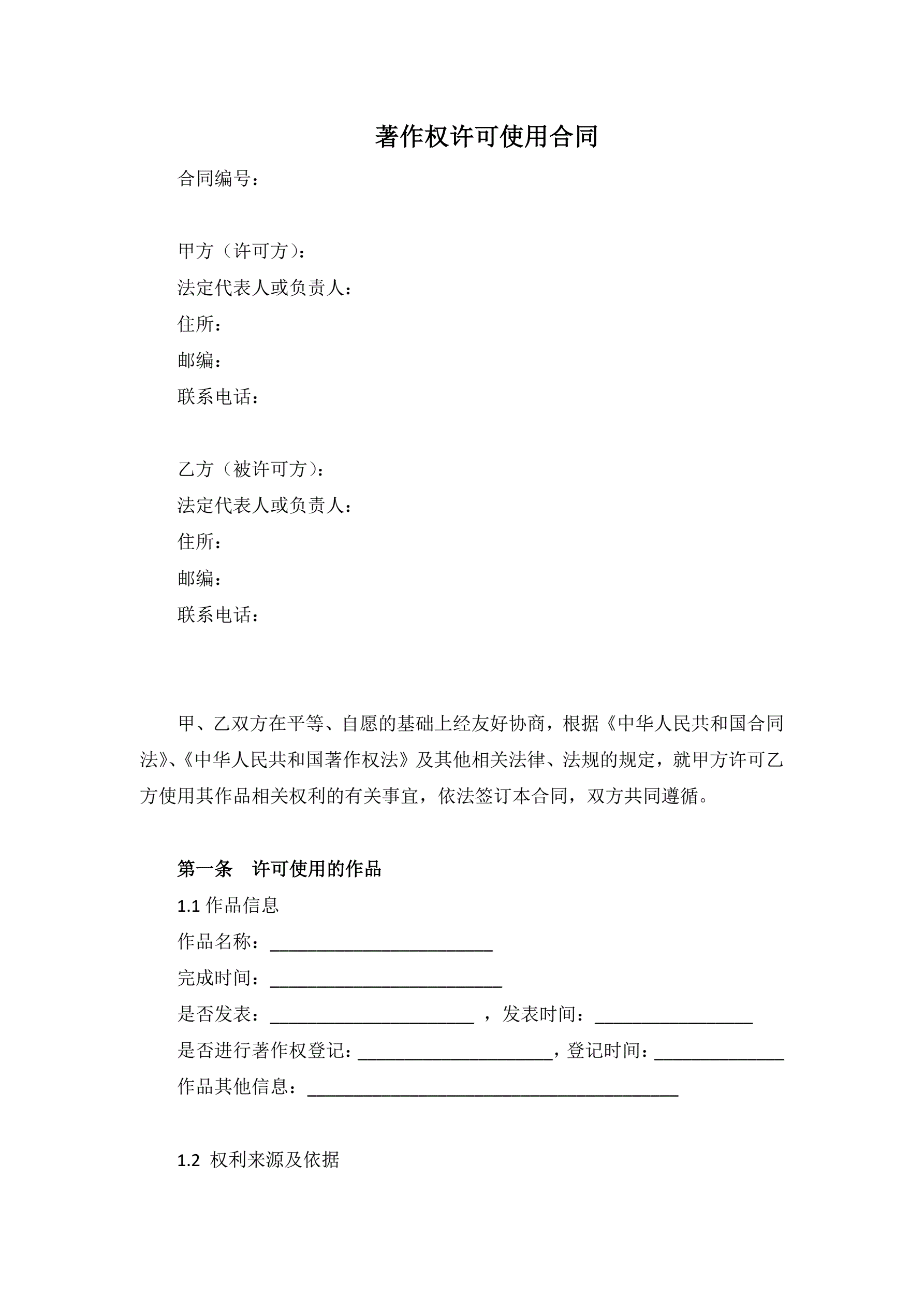 >著作权许可使用合同