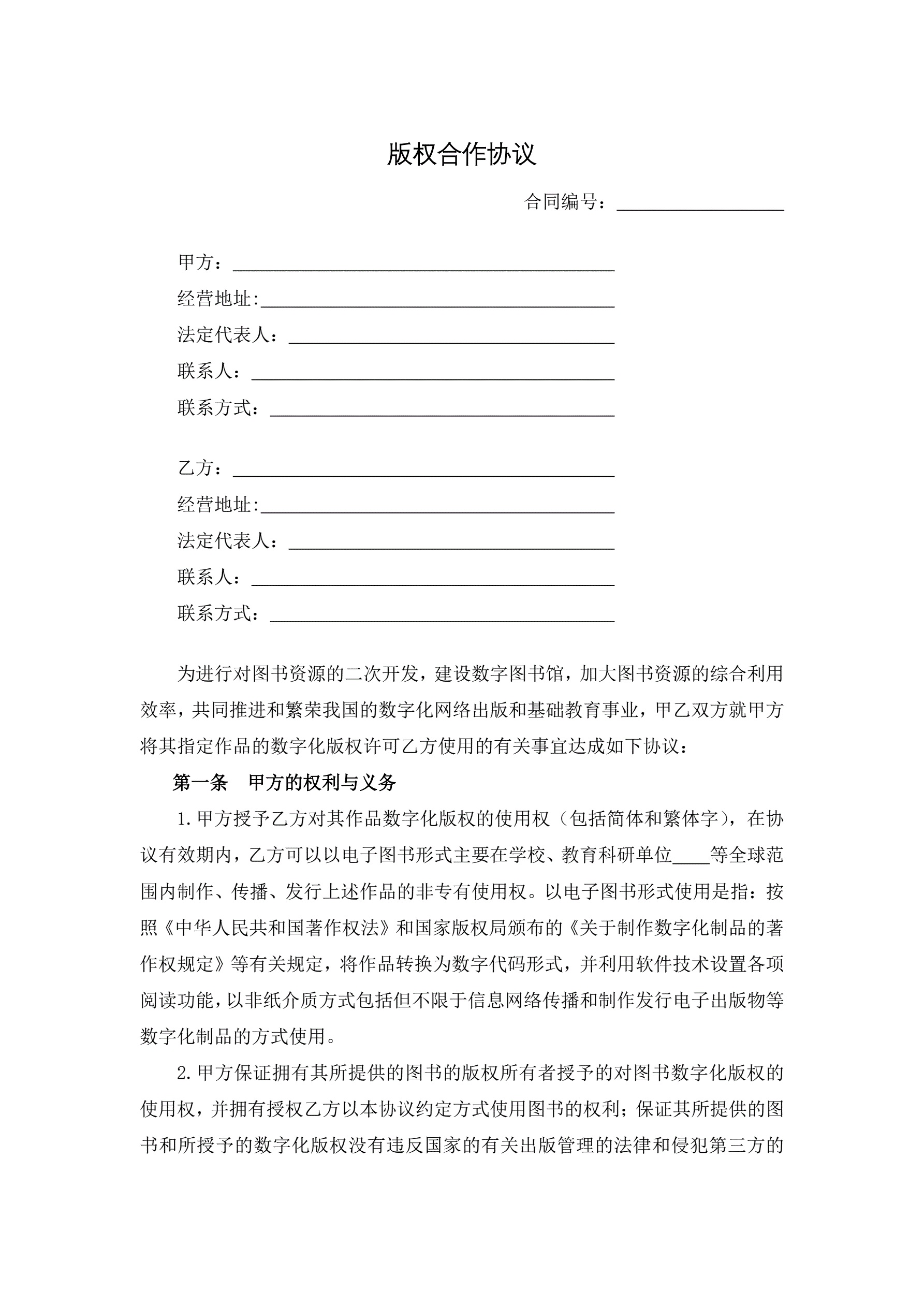 版权合作协议
