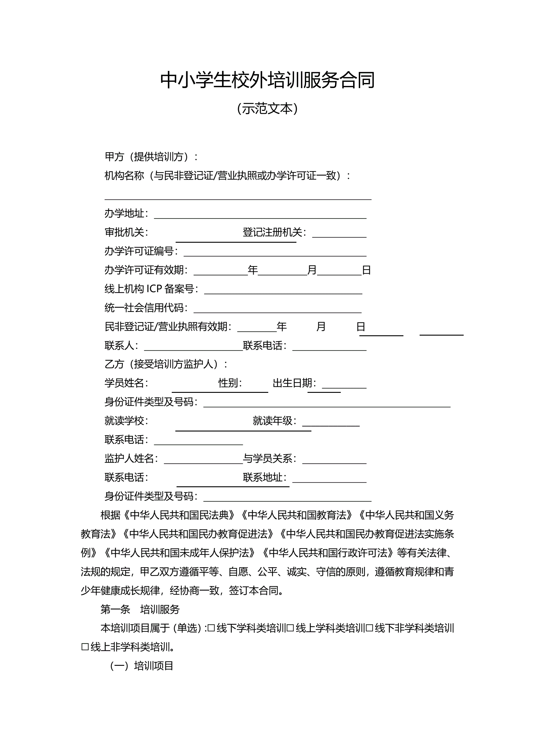 >重庆市中小学生校外培训服务合同示范文本(2021版)
