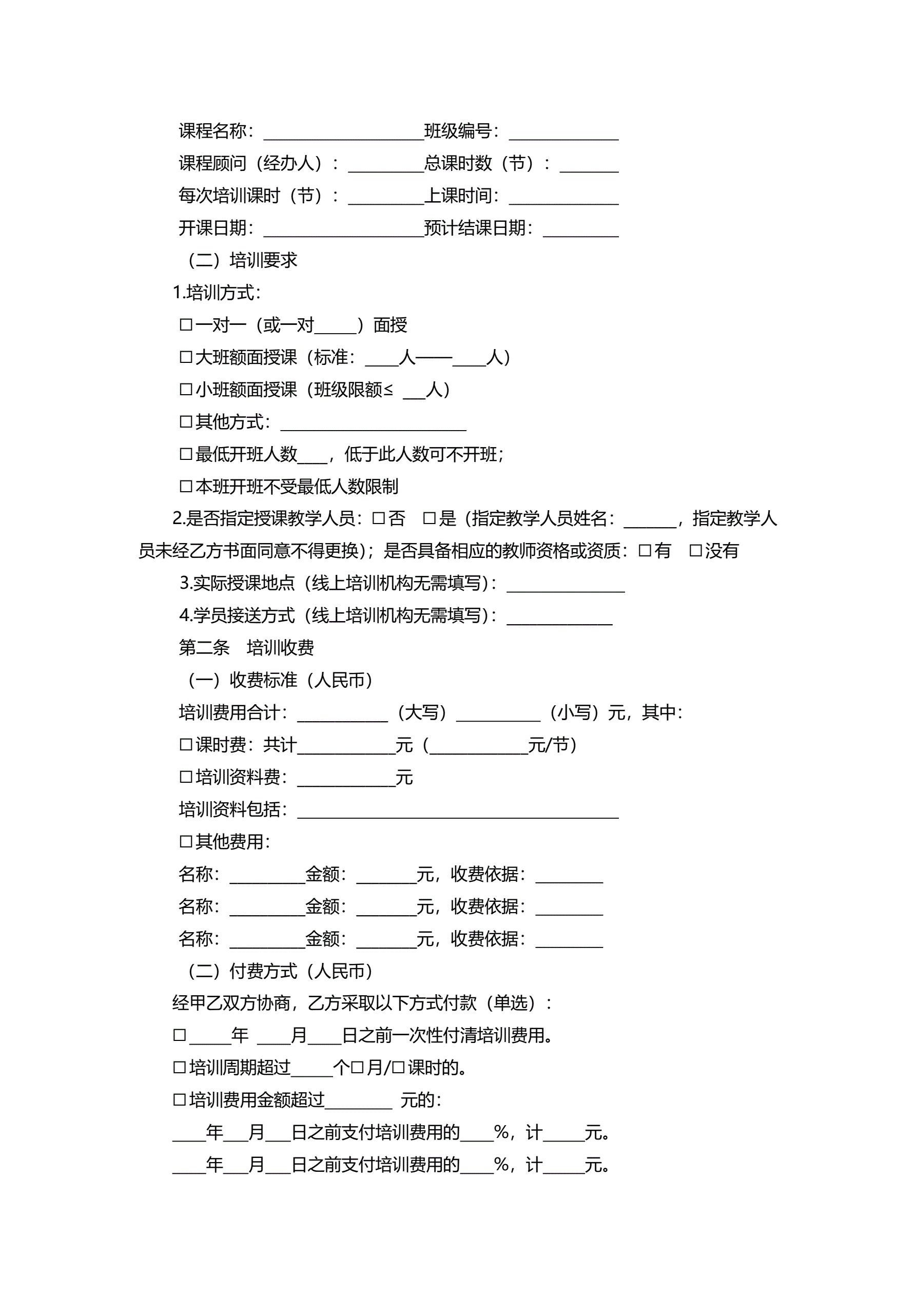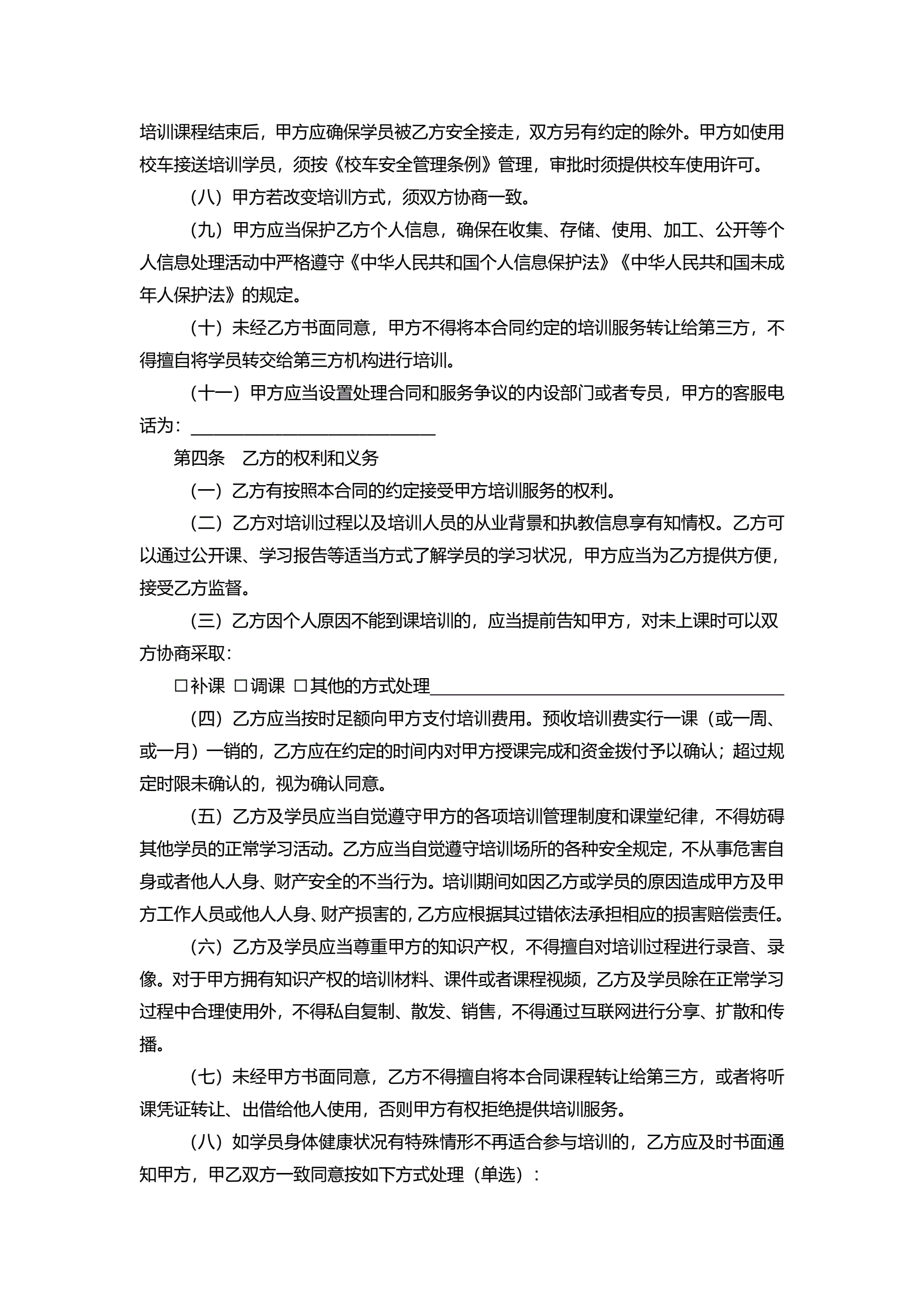 重庆市中小学生校外培训服务合同示范文本(2021版)