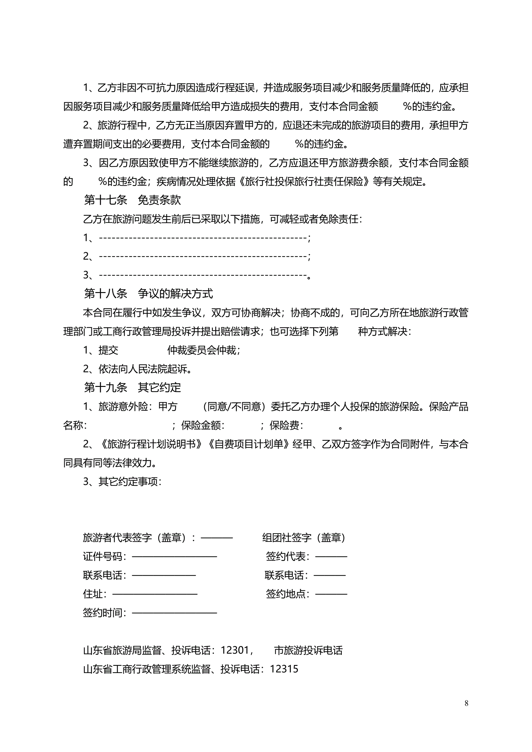 2009SDF-2009-0007《山东省国内旅游合同示范文本》