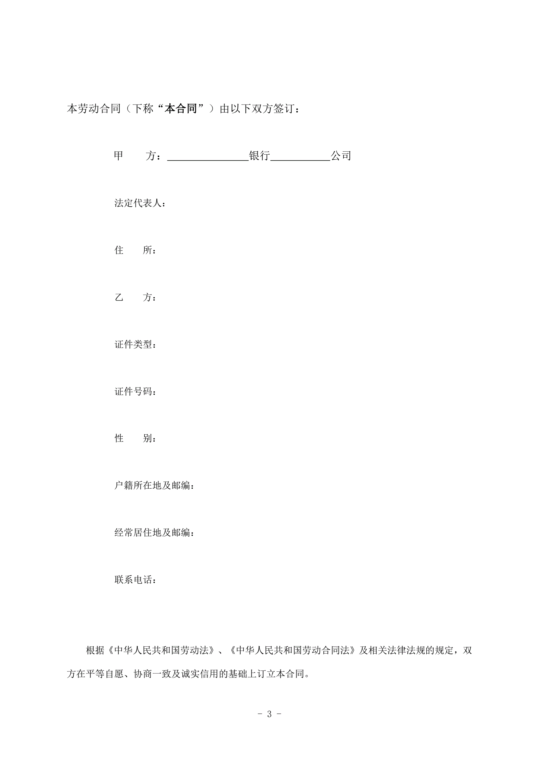 邮政储蓄银行XX支行劳动合同