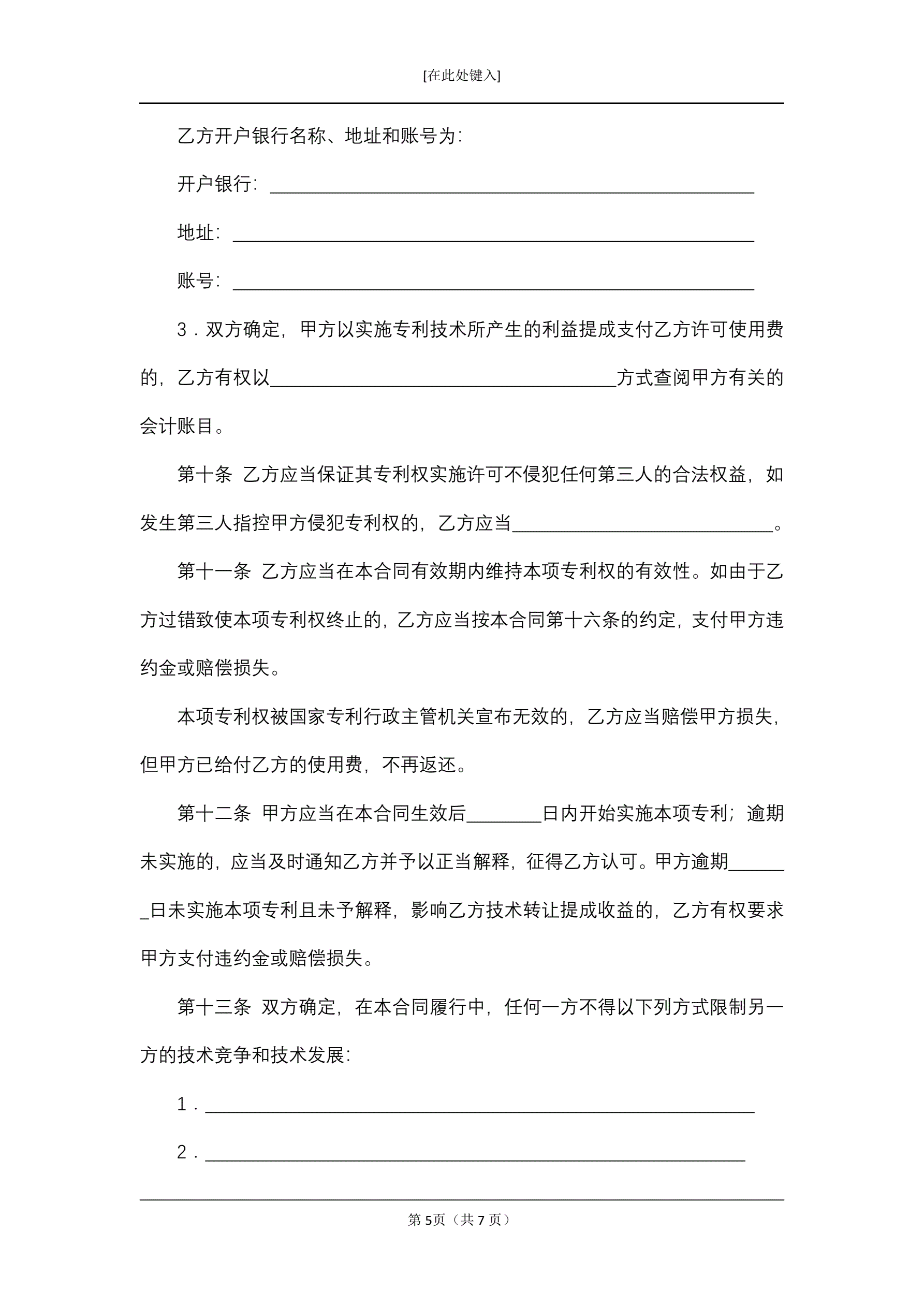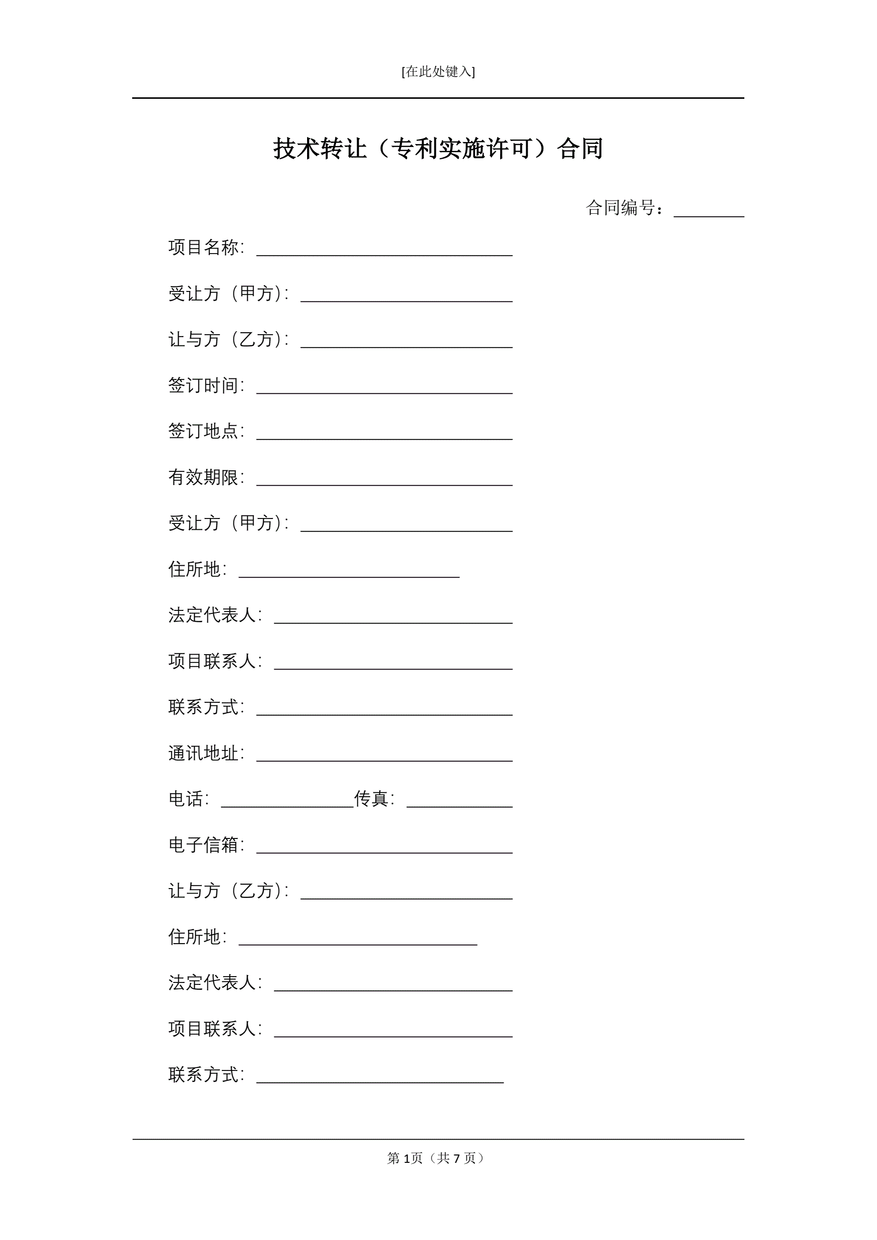 技术转让(专利实施许可)合同