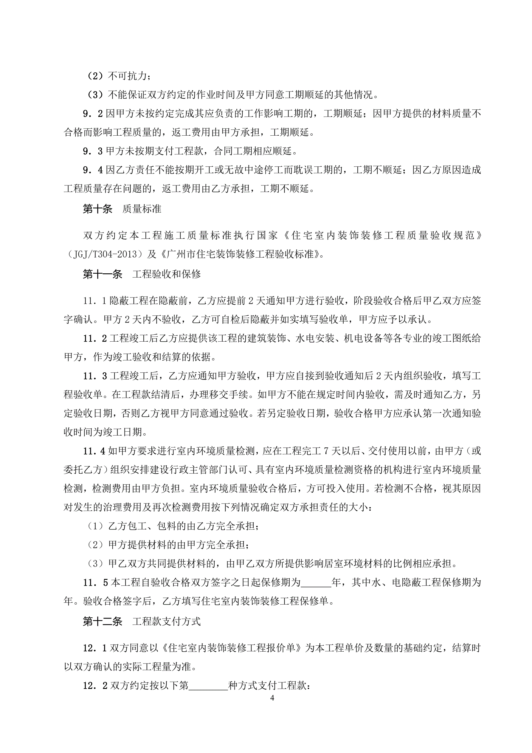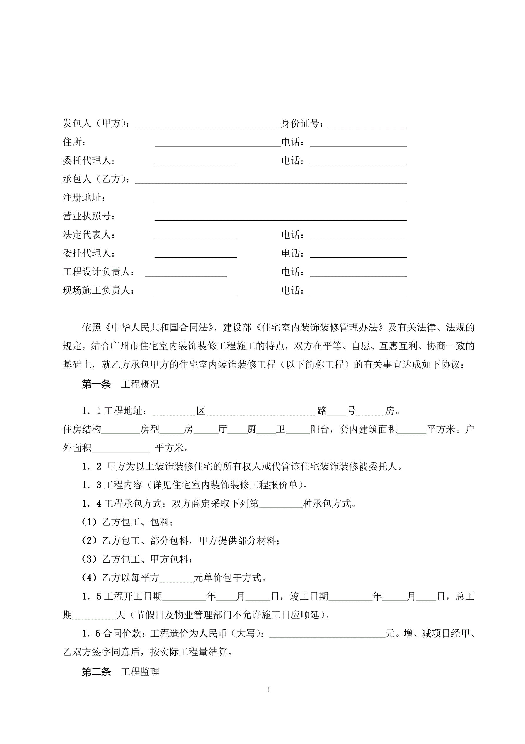广州市住宅室内装饰装修工程施工合同