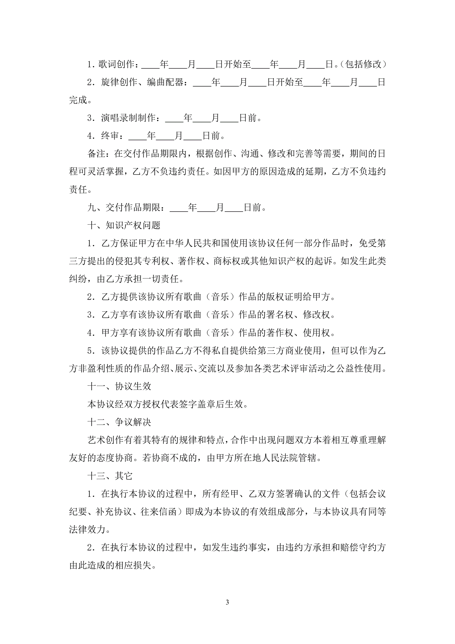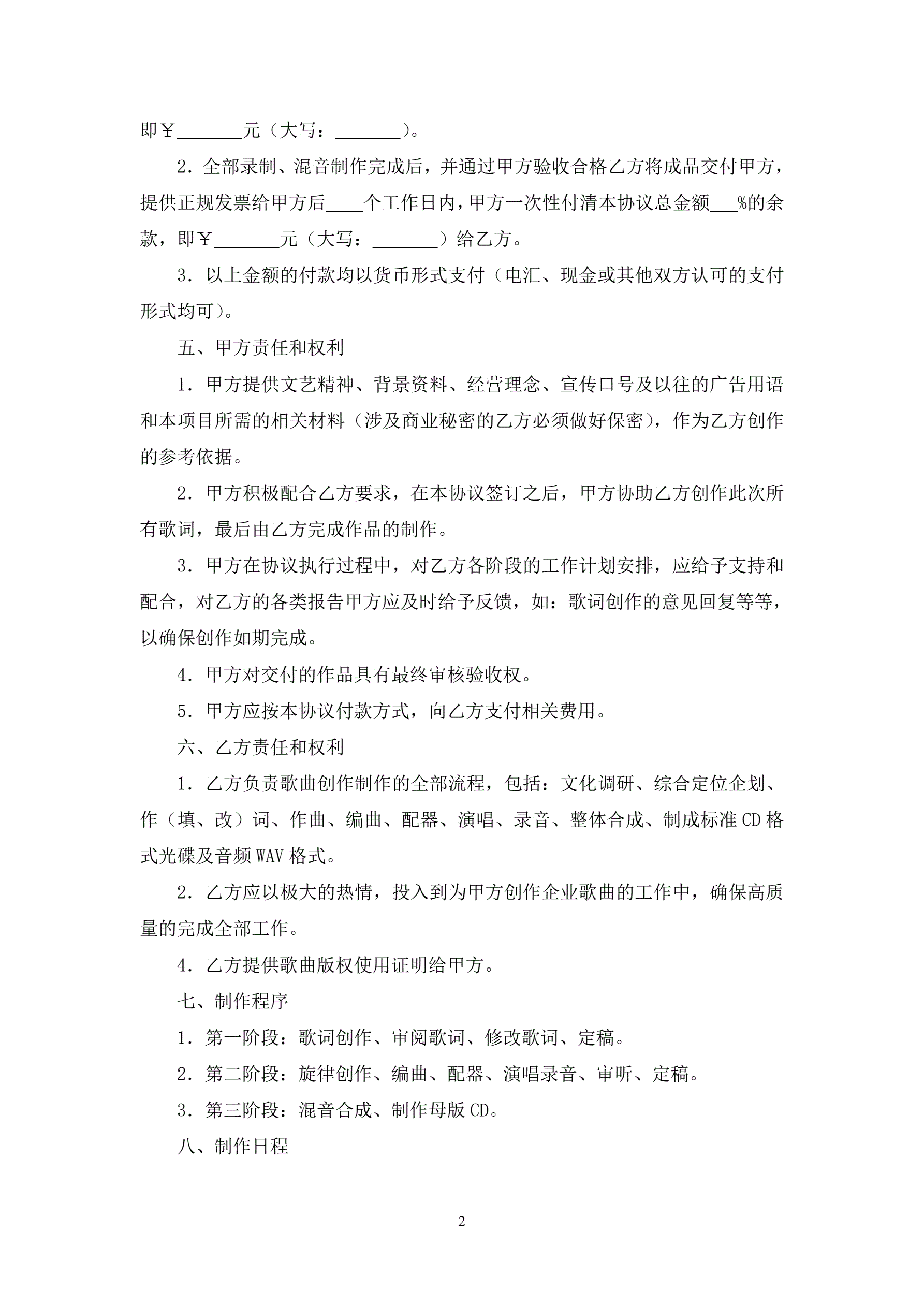 歌曲委托制作合同协议书