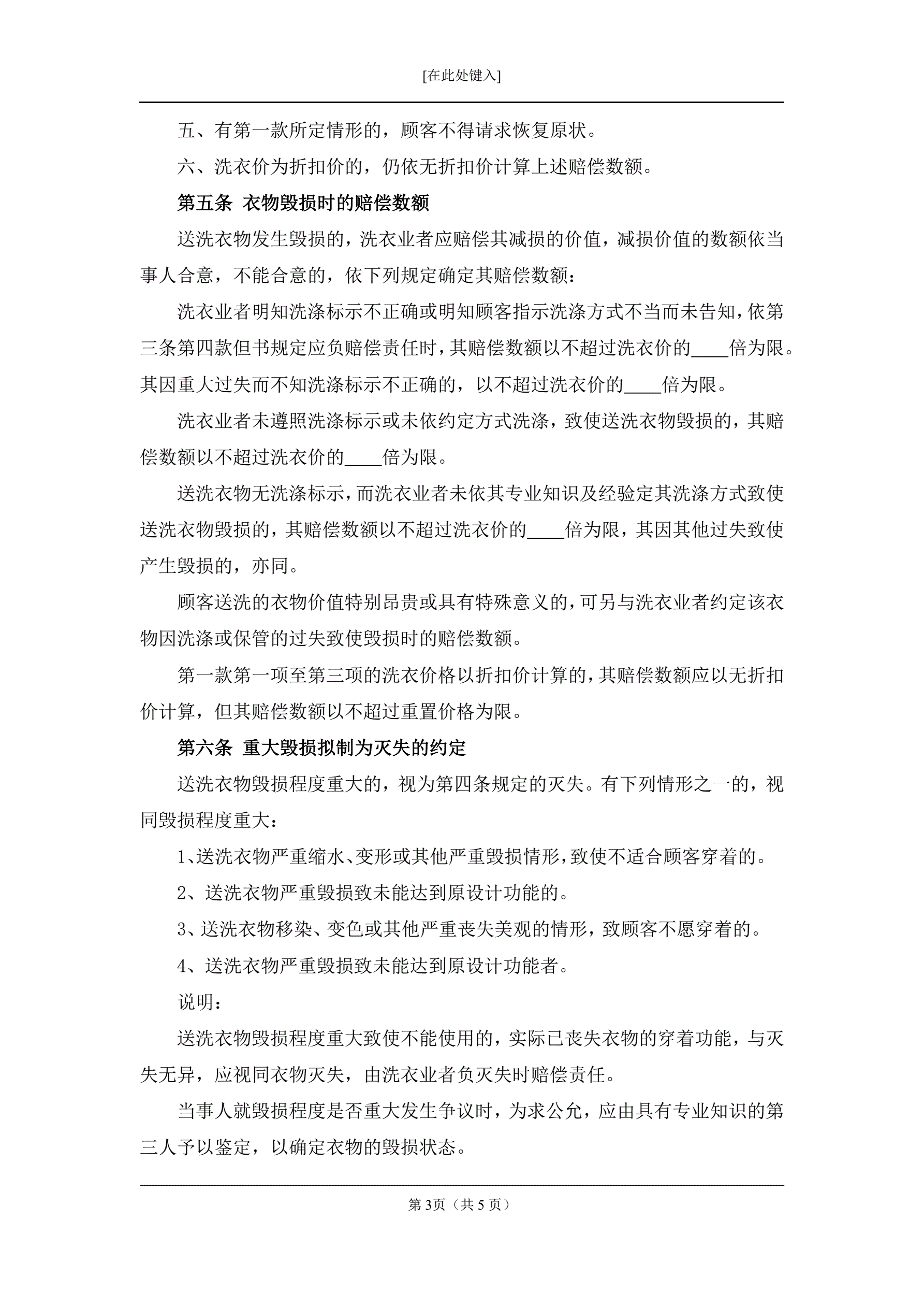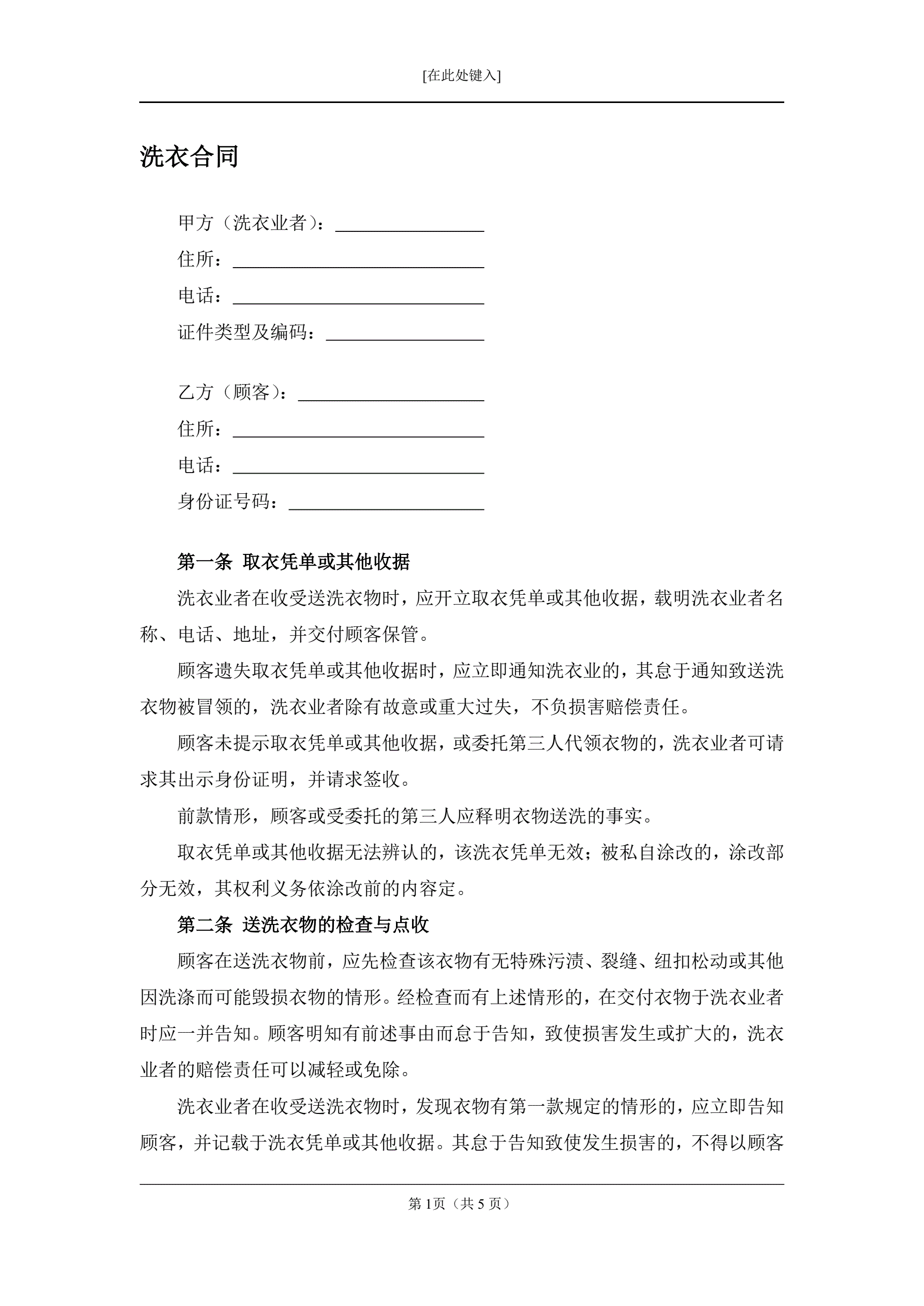 洗衣合同
