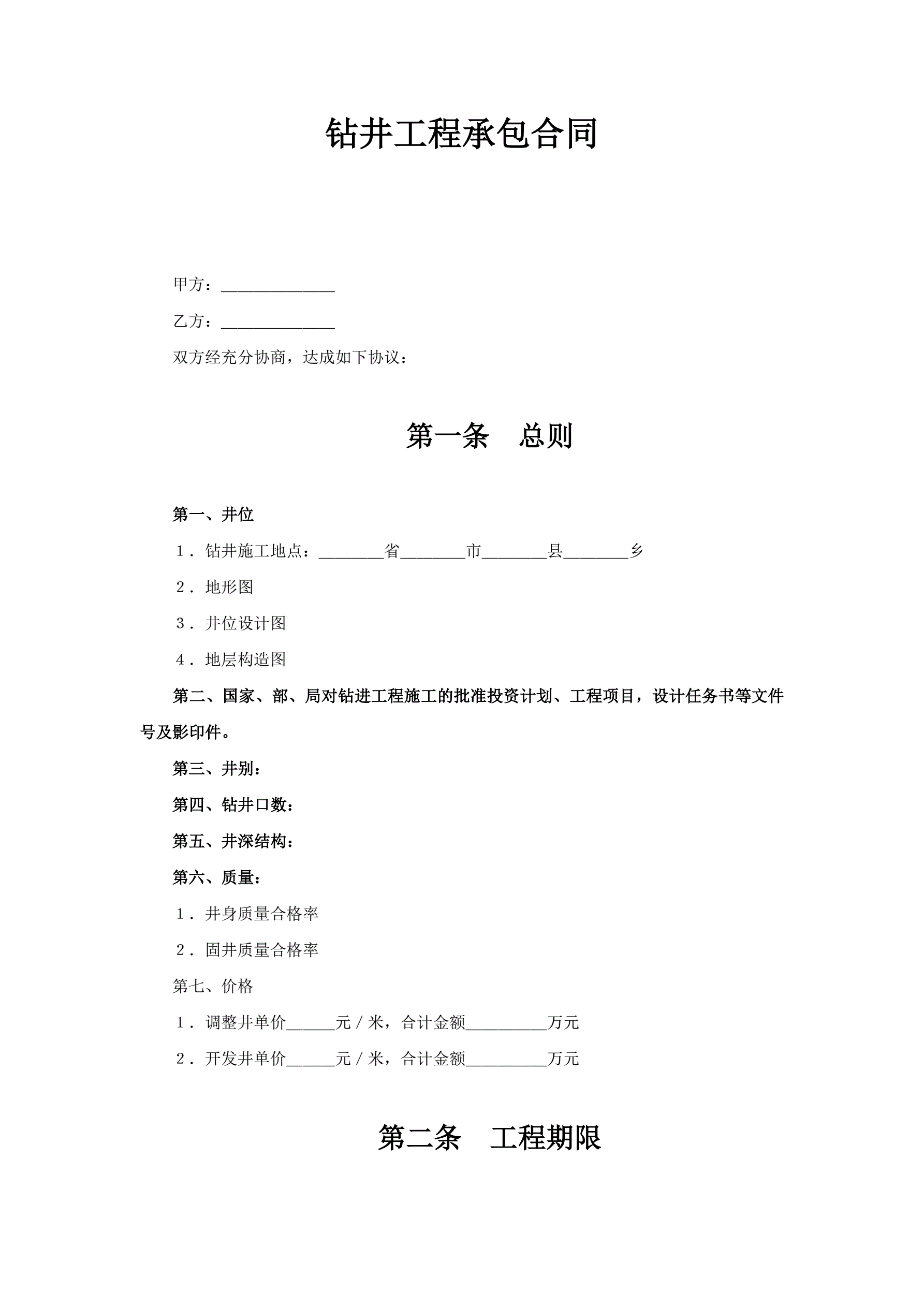 钻井工程承包合同