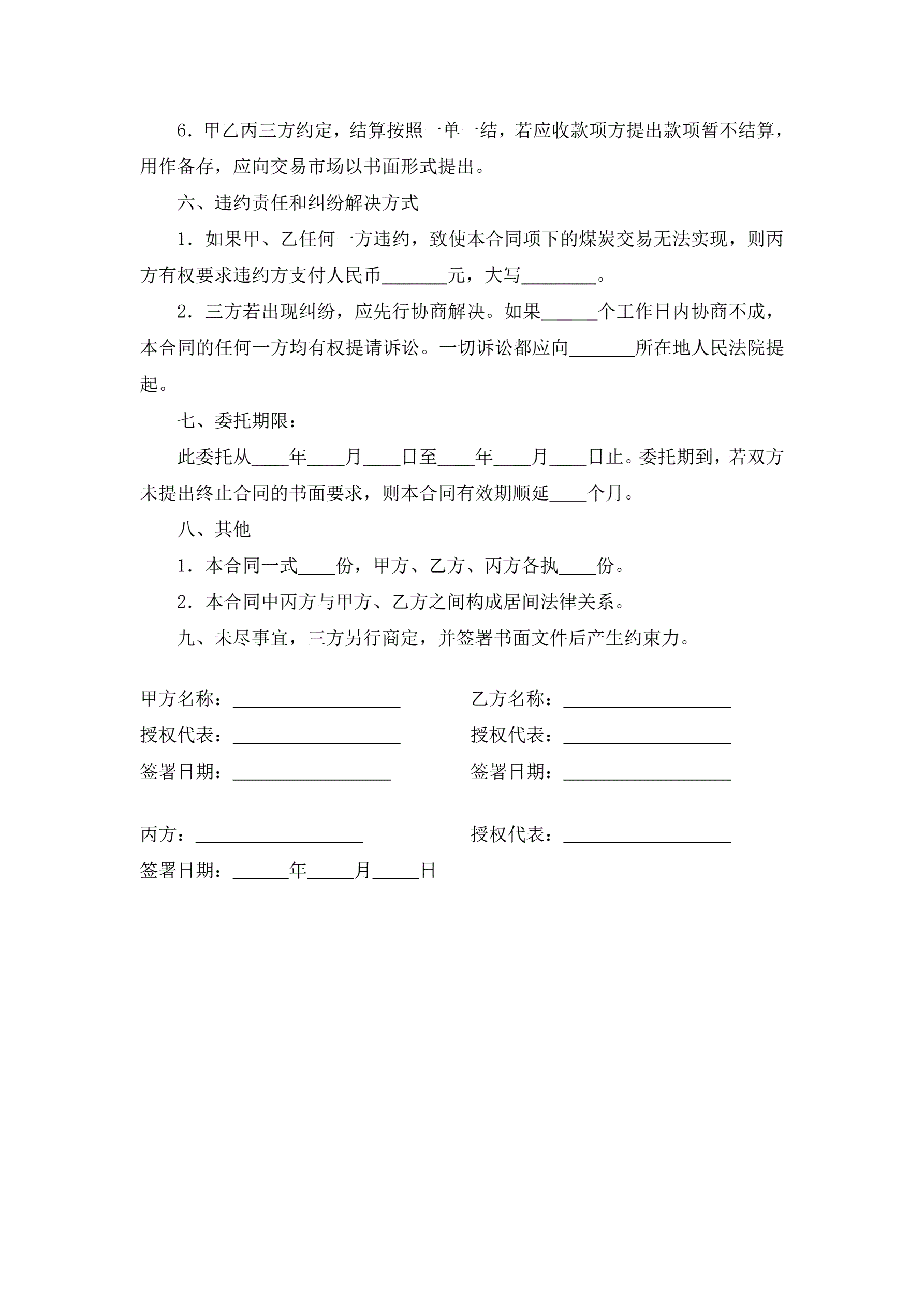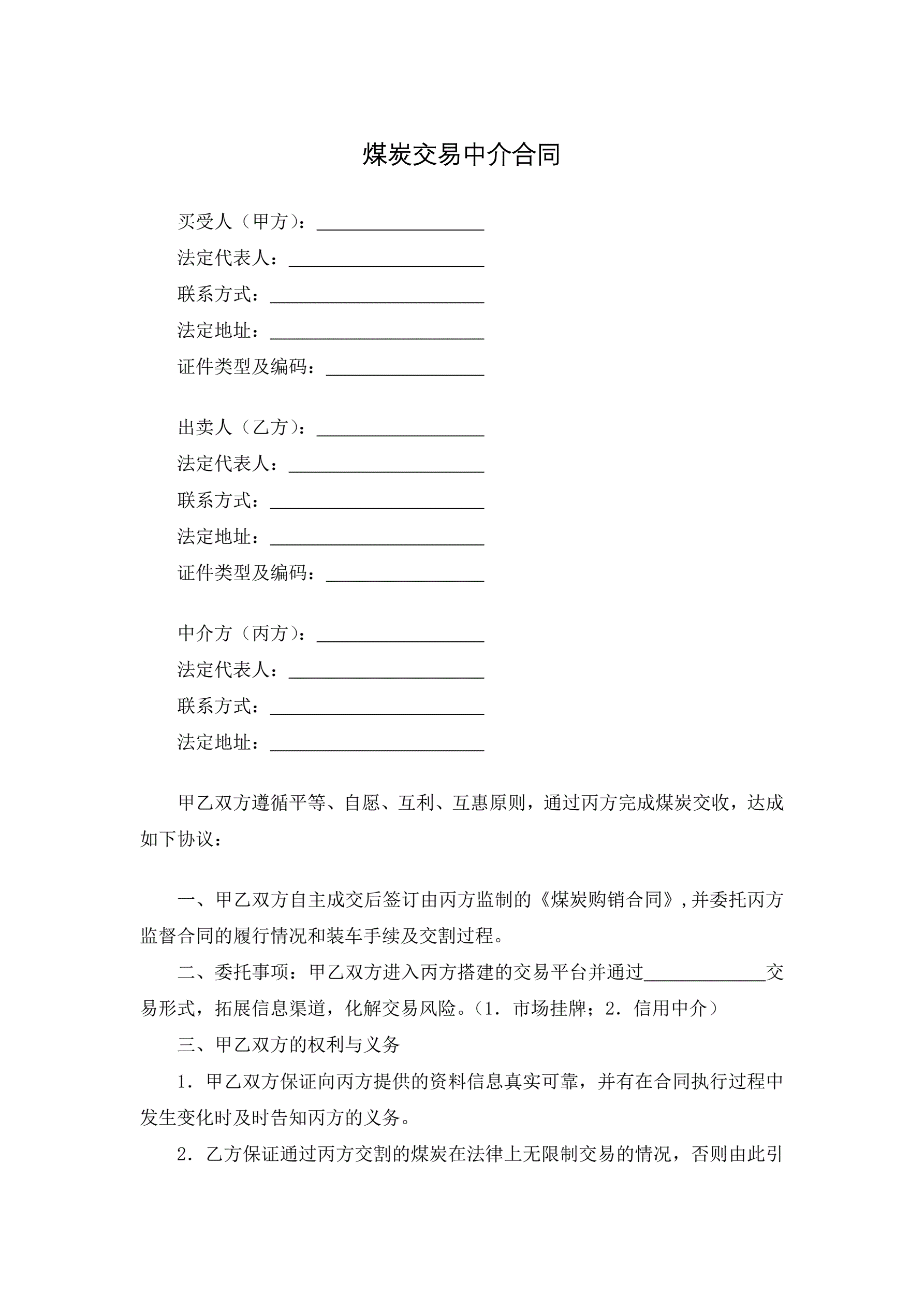 煤炭交易中介合同