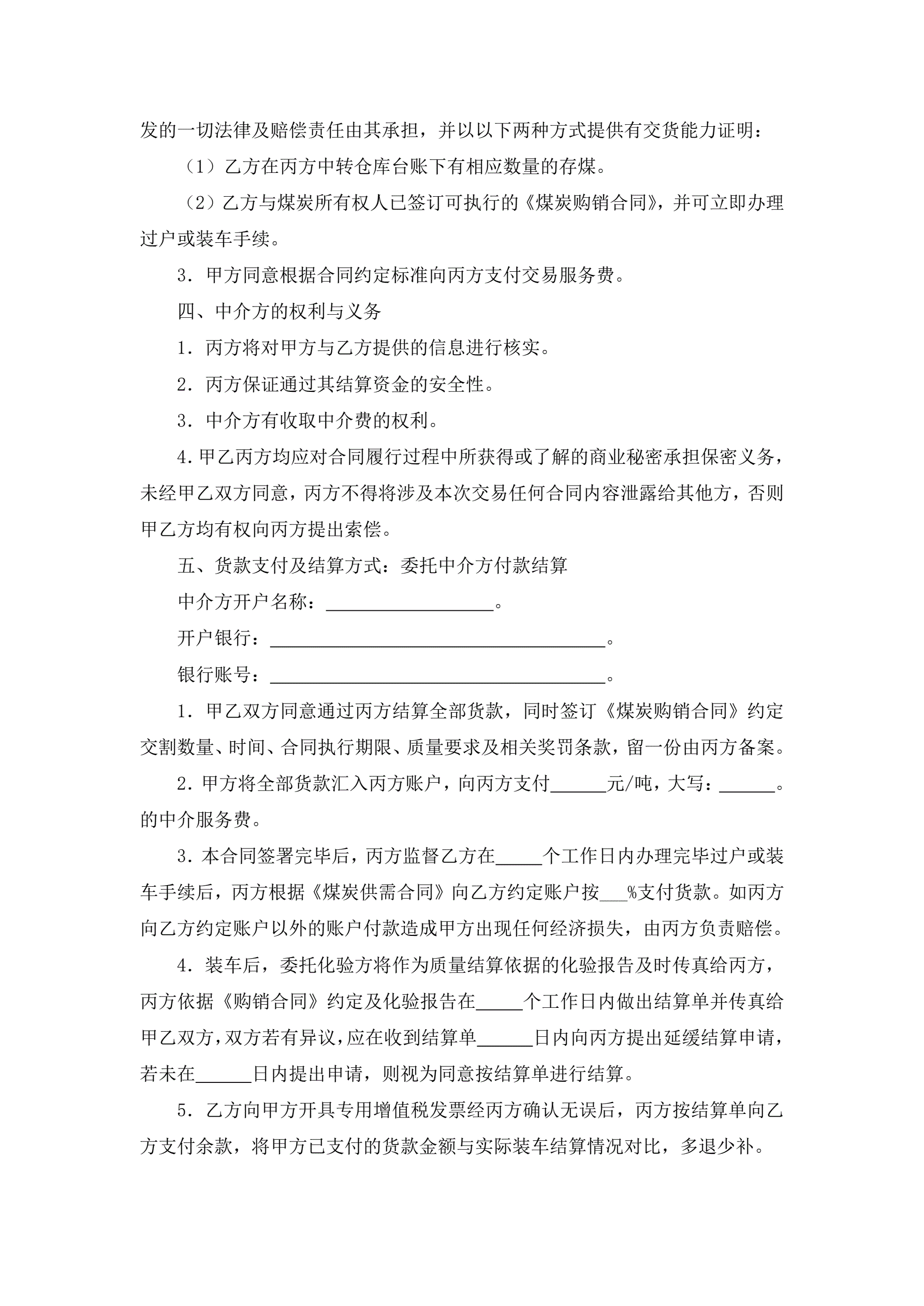 >煤炭交易中介合同