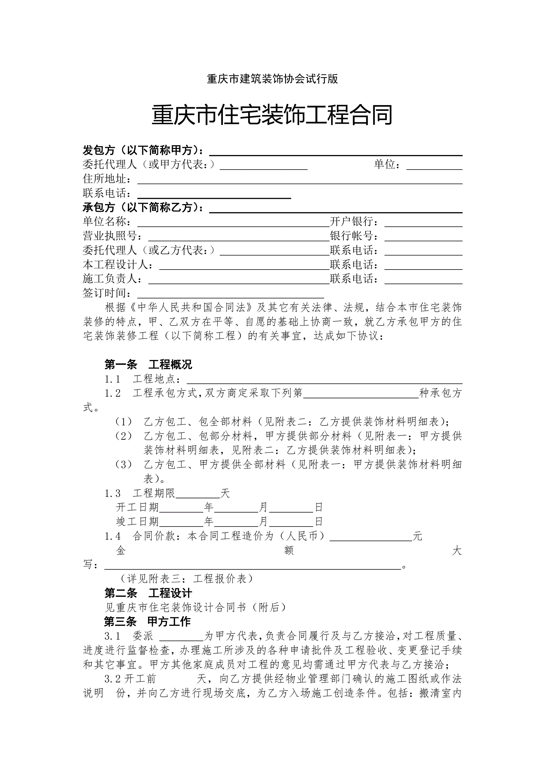 >重庆市住宅装饰工程合同