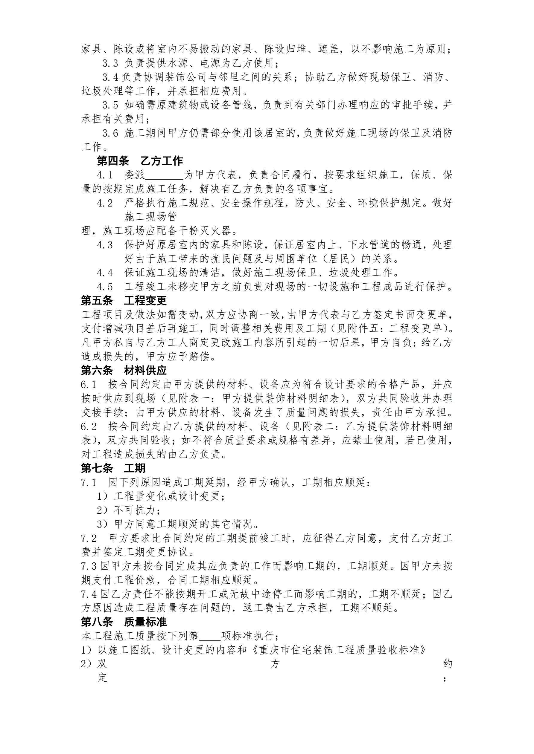 重庆市住宅装饰工程合同