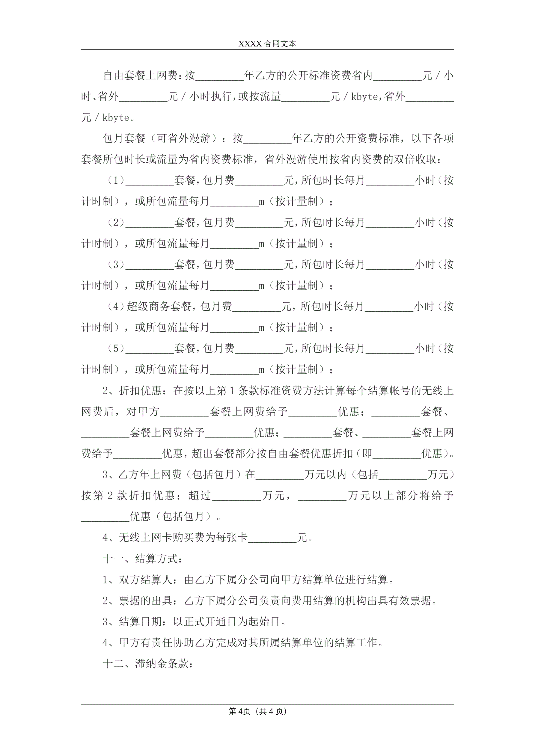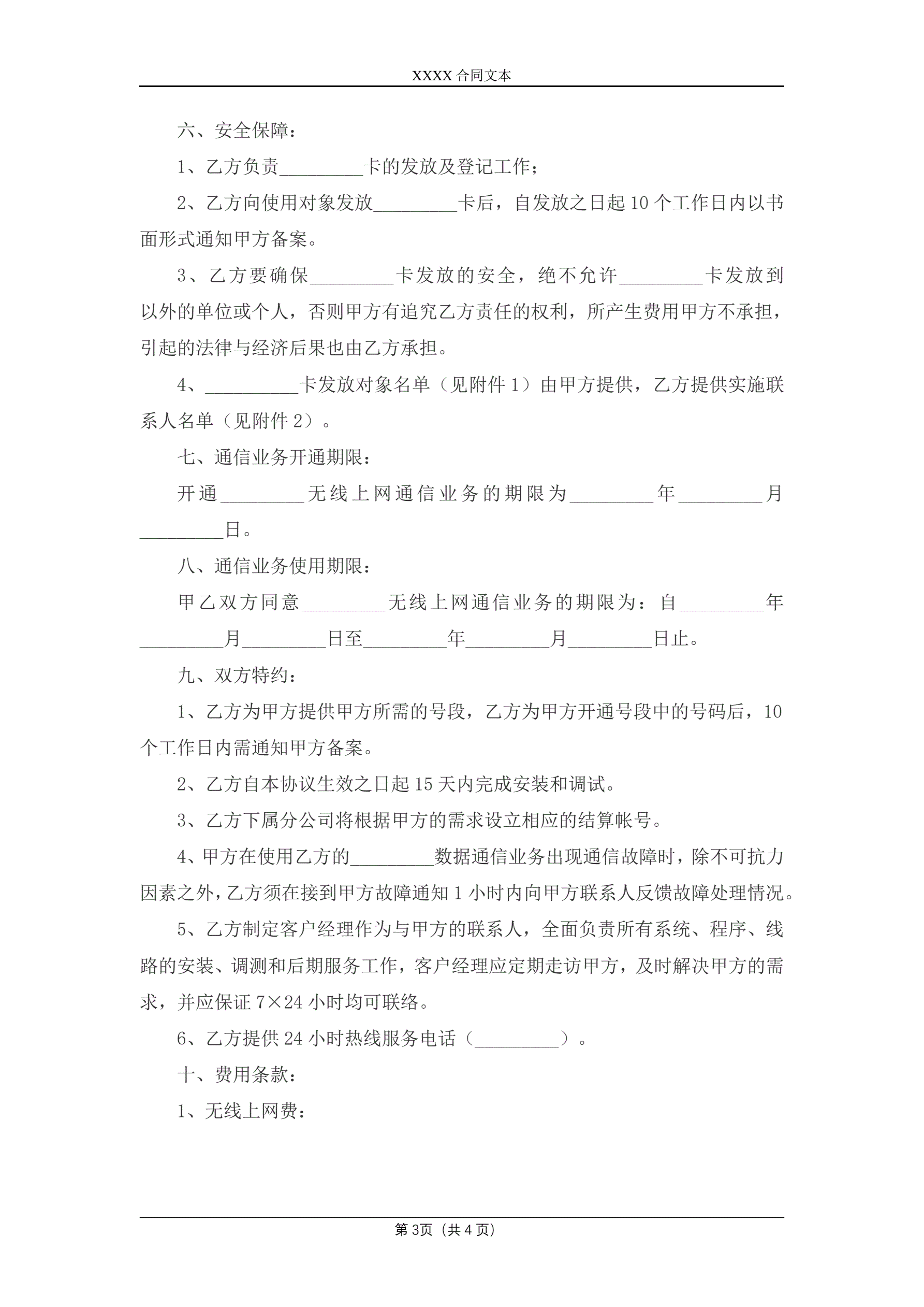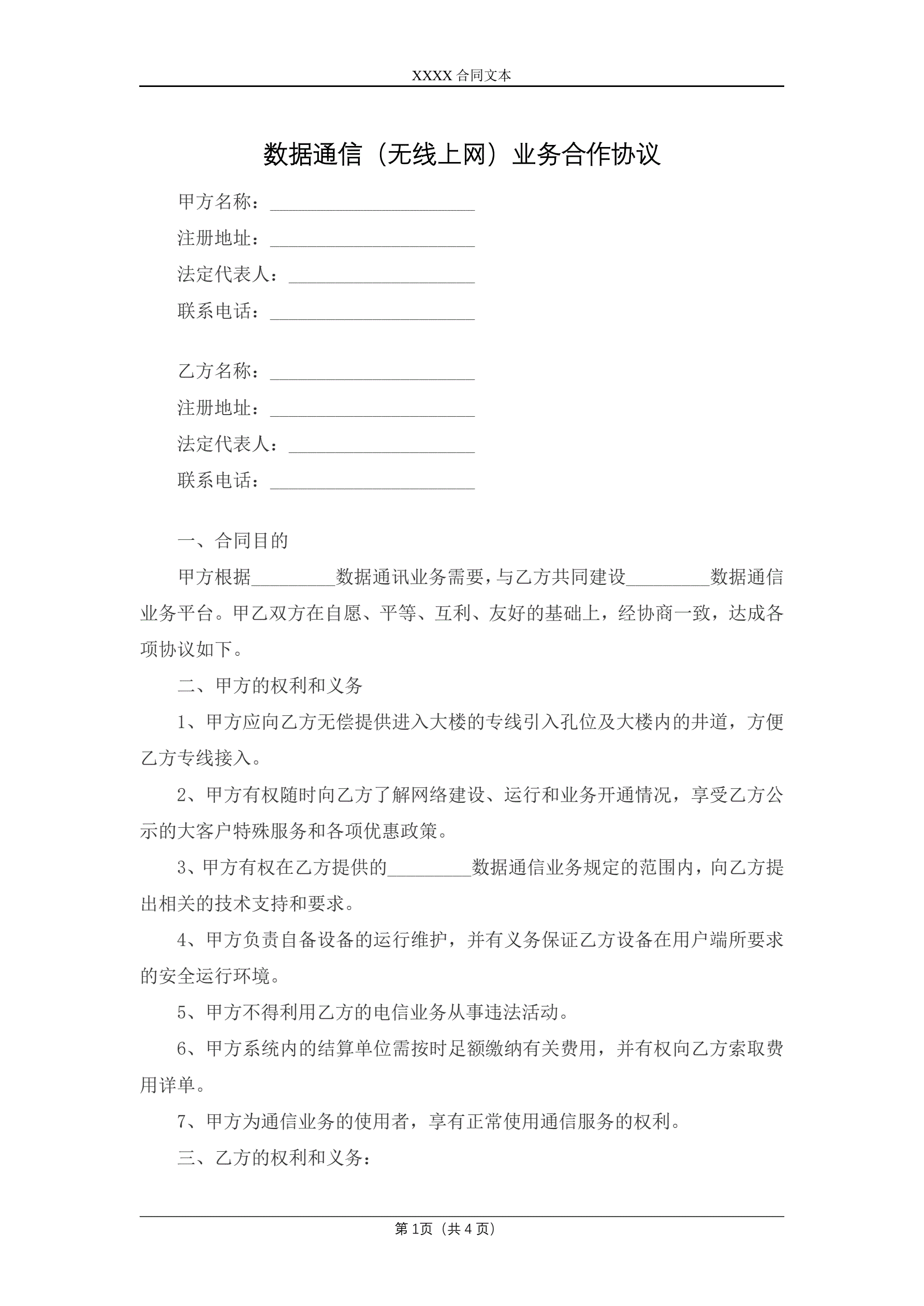 合同名称:数据通信(无线上网)业务合作协议
