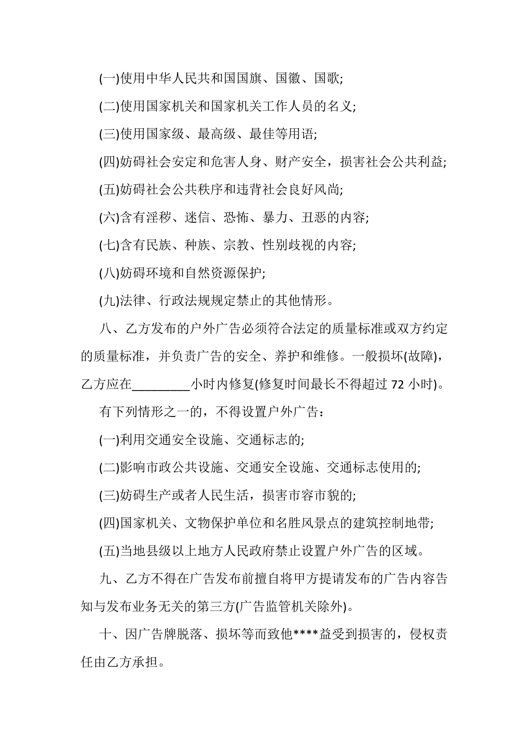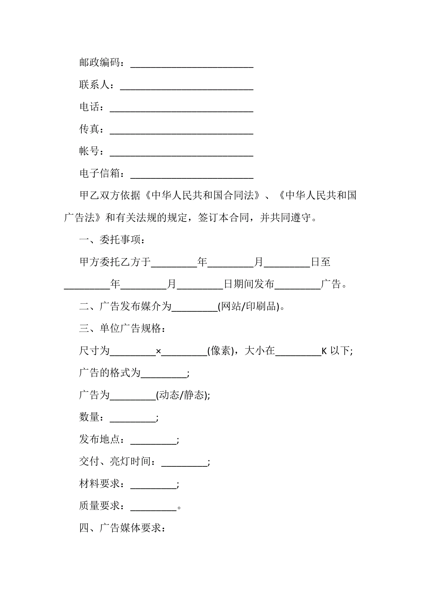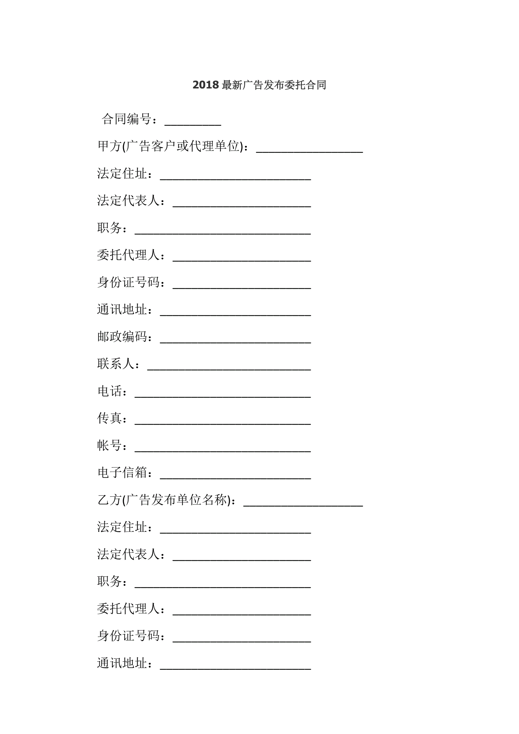 2018最新广告发布委托合同