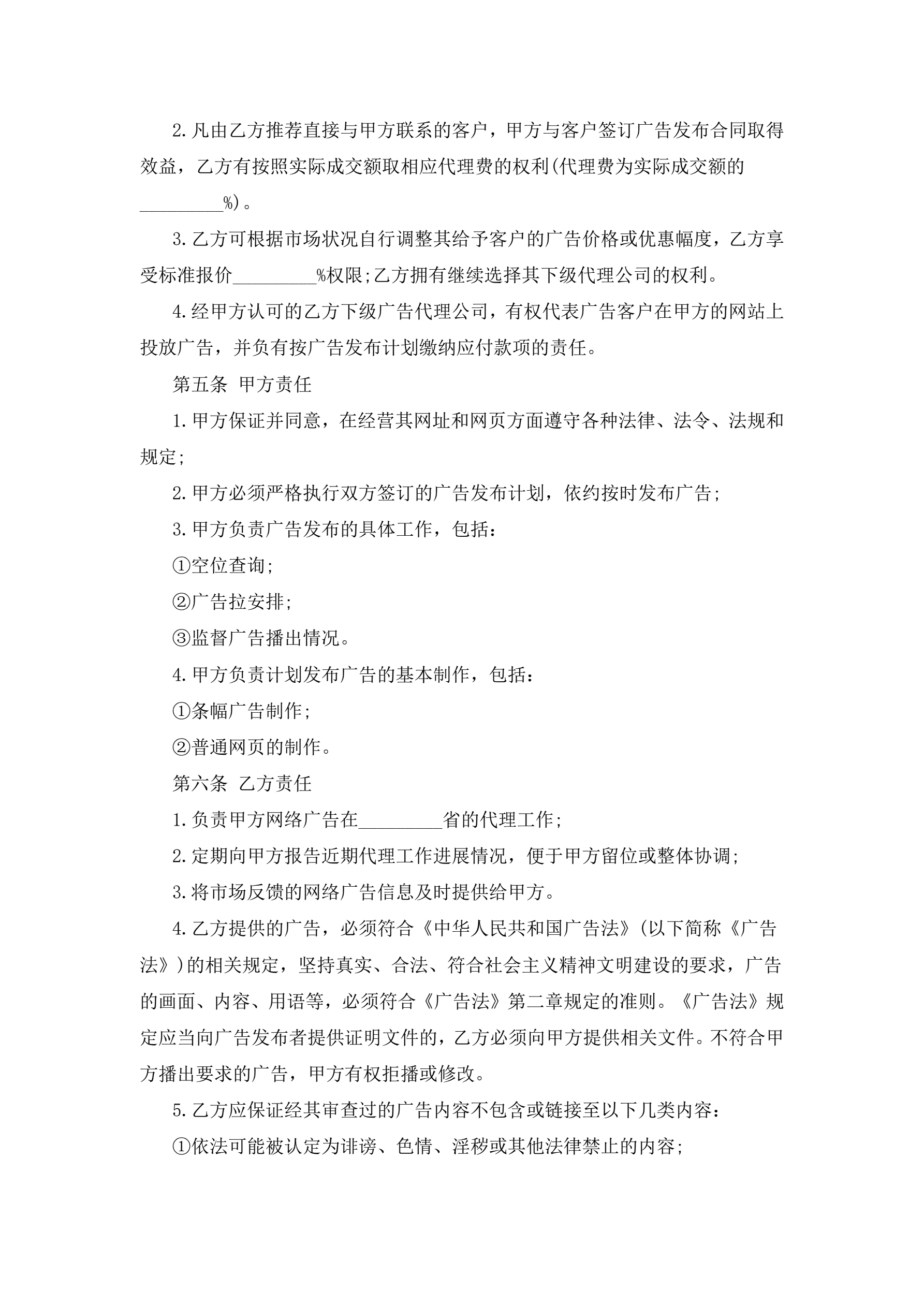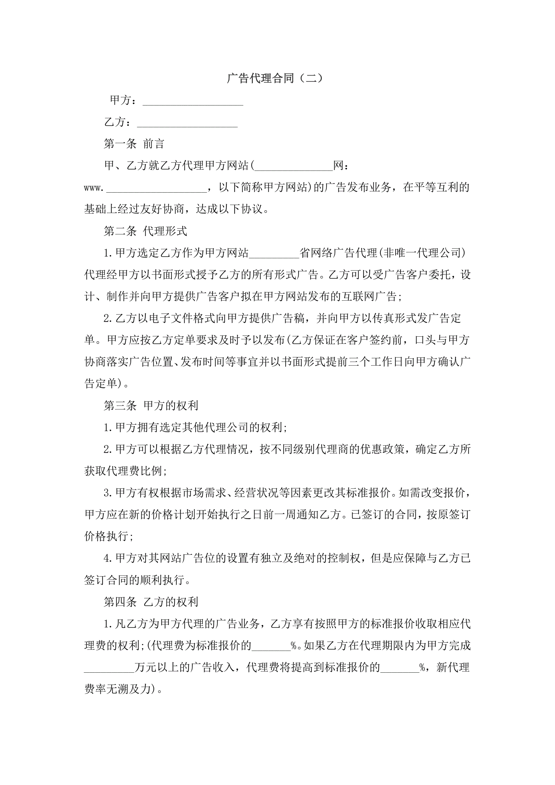 >广告代理合同二