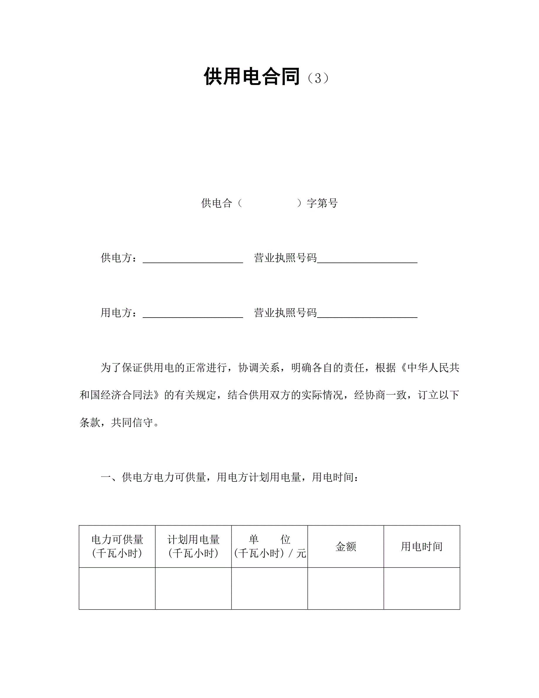 合同名称:供用电合同(3)