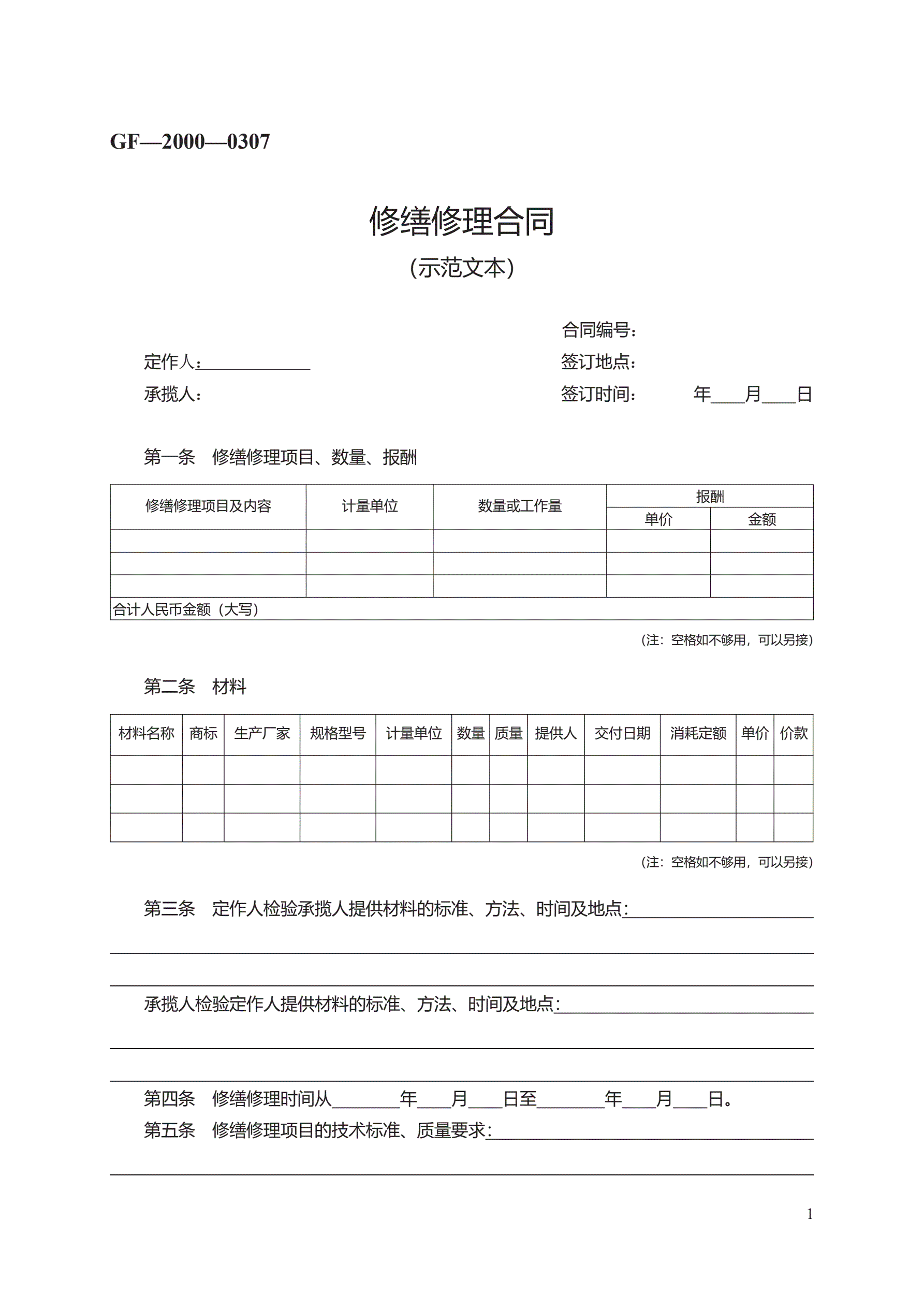 修缮修理合同 GF—2000—0307