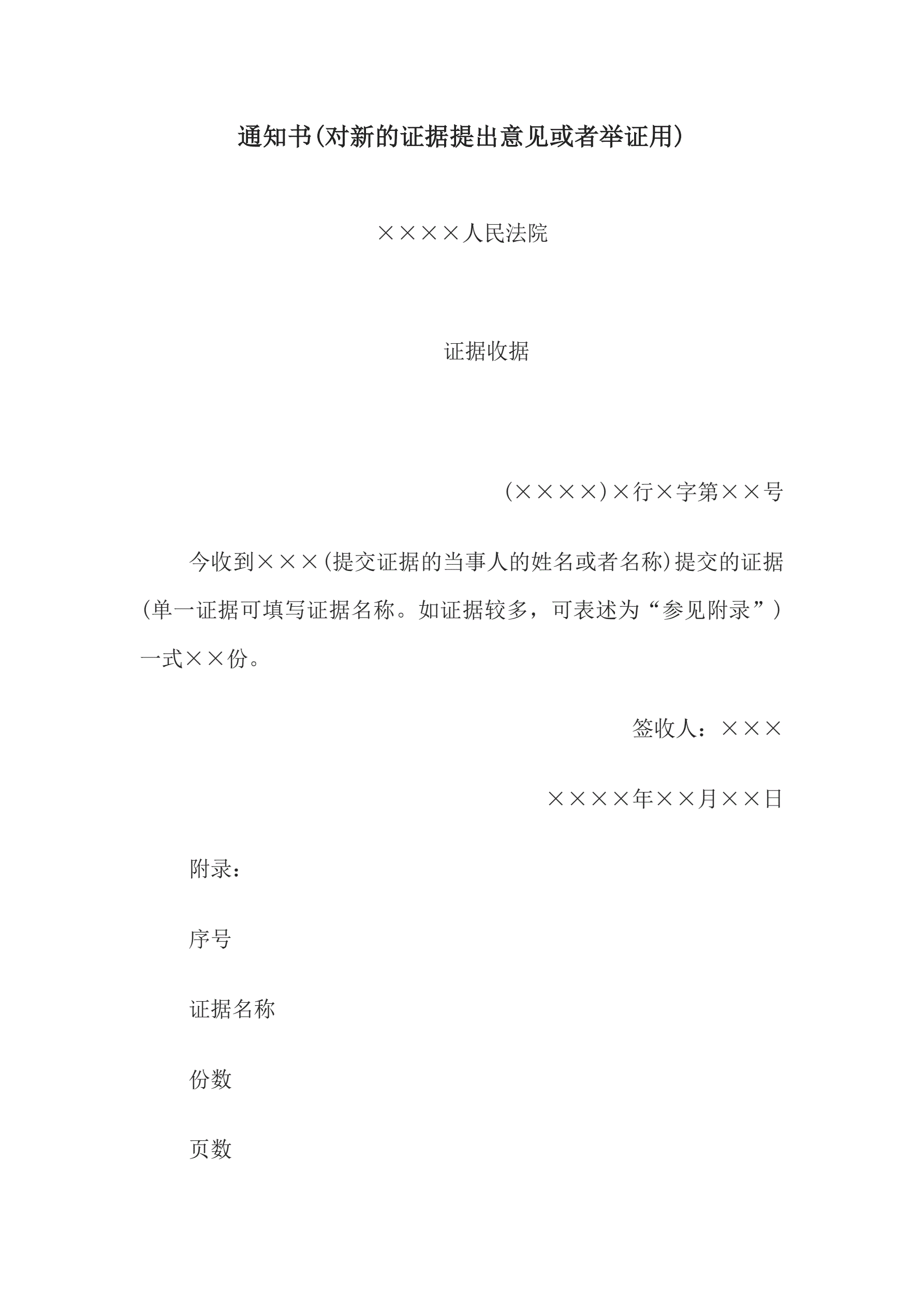 合同名称:通知书(对新的证据提出意见或者举证用)