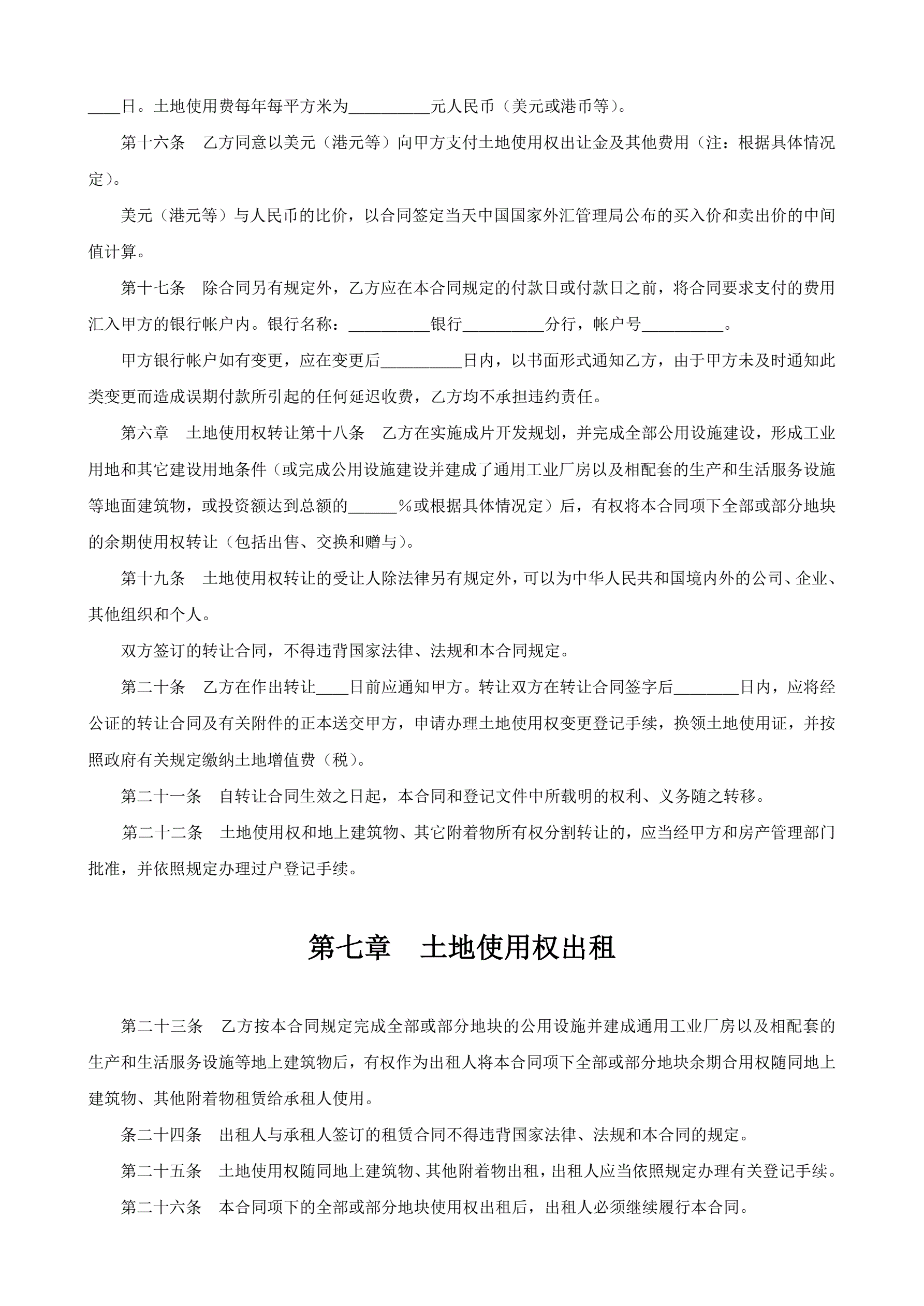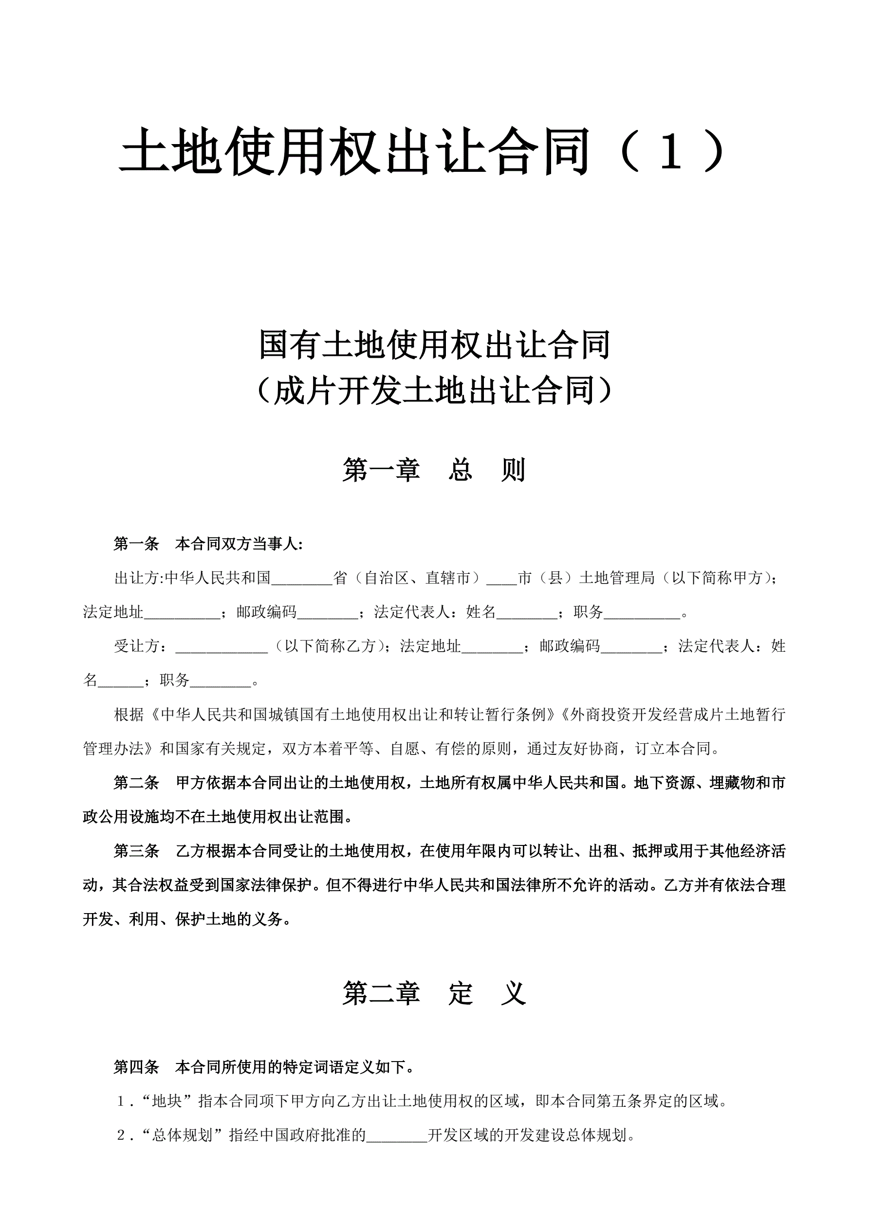 土地使用权出让合同