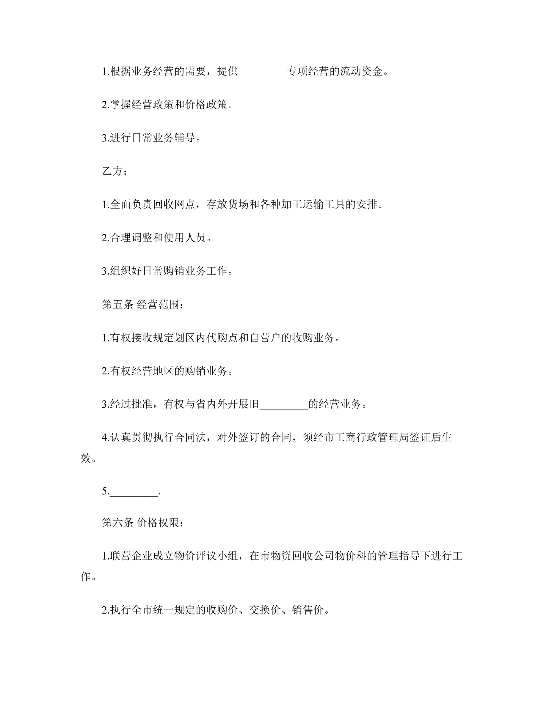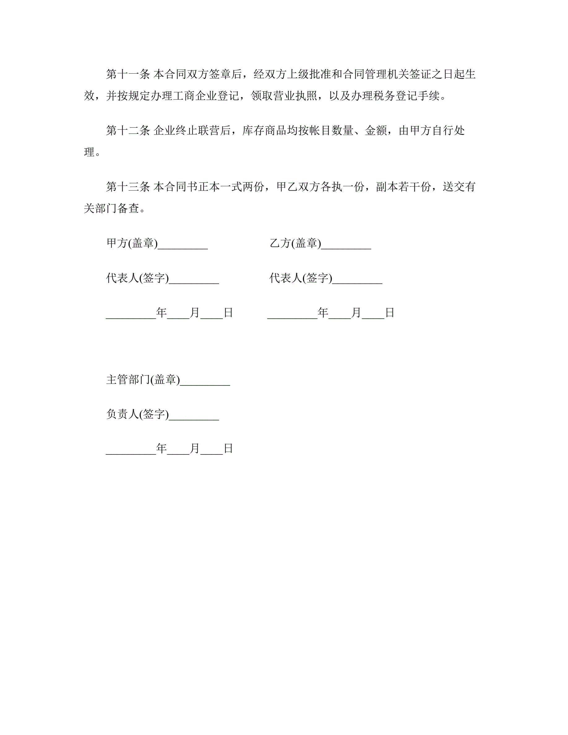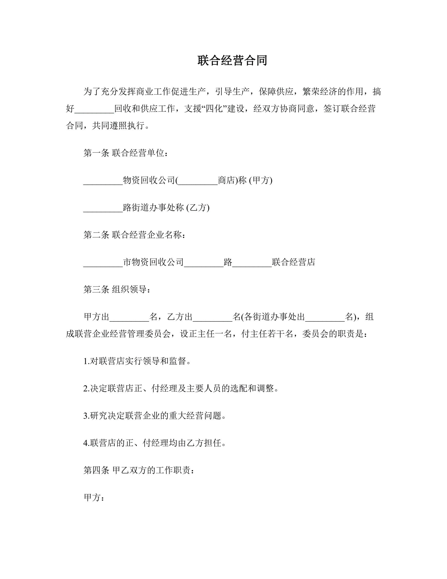 >联合经营合同