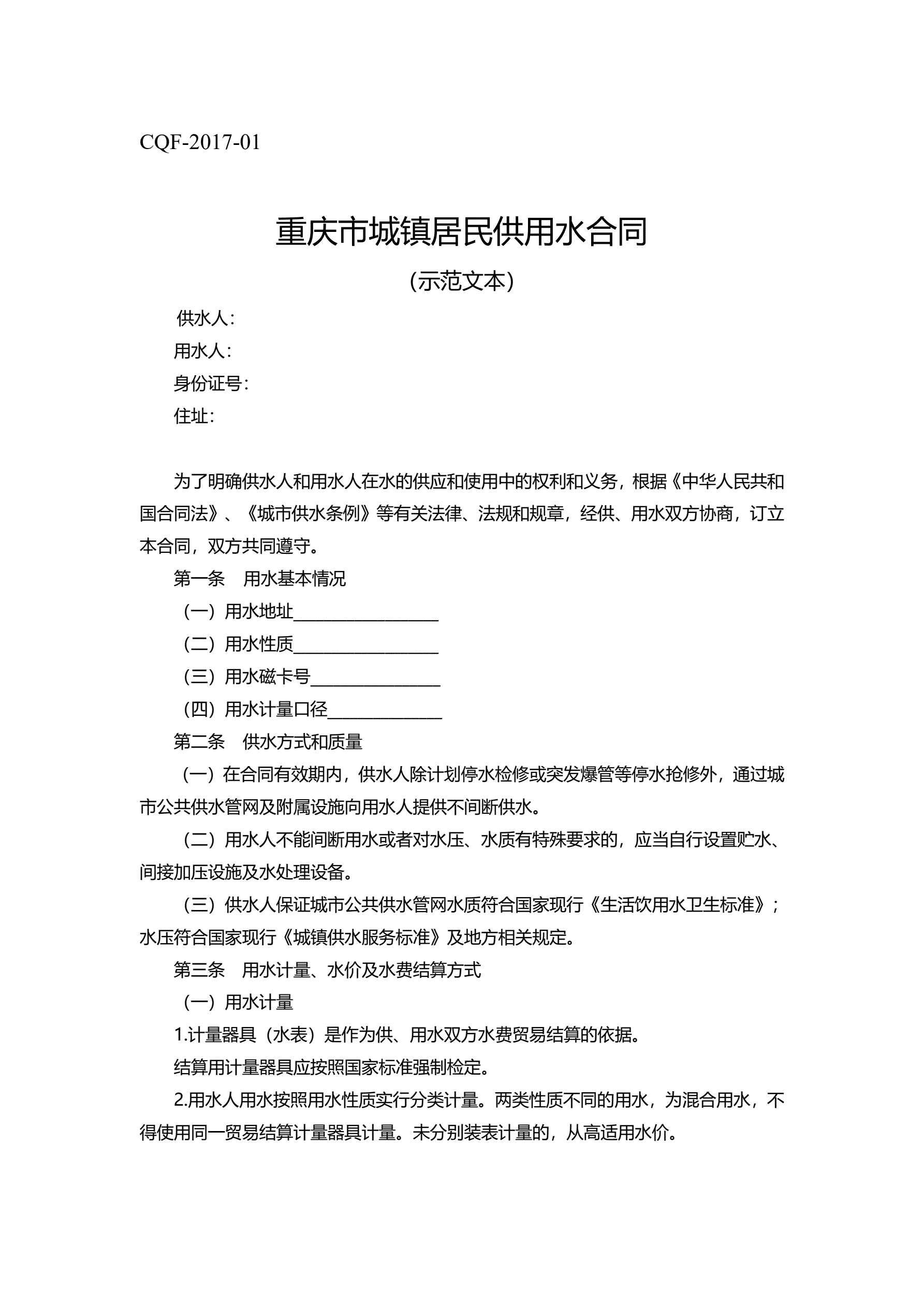 >重庆市城镇居民供用水合同示范文本(2017版)
