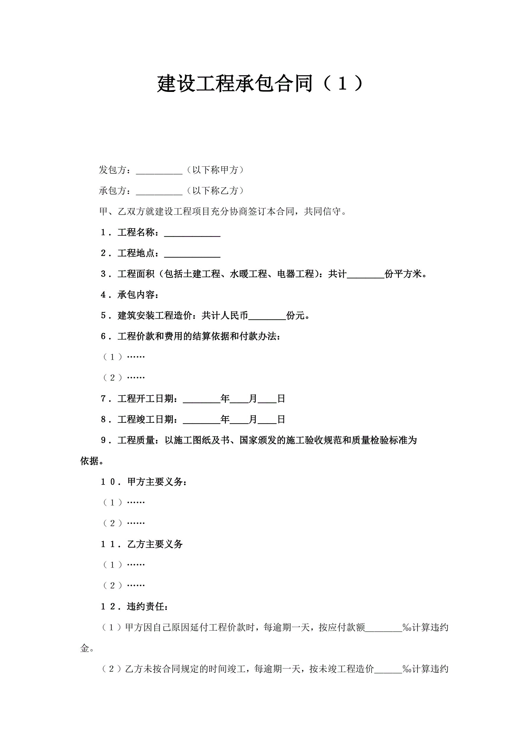 >建设工程承包合同(1)