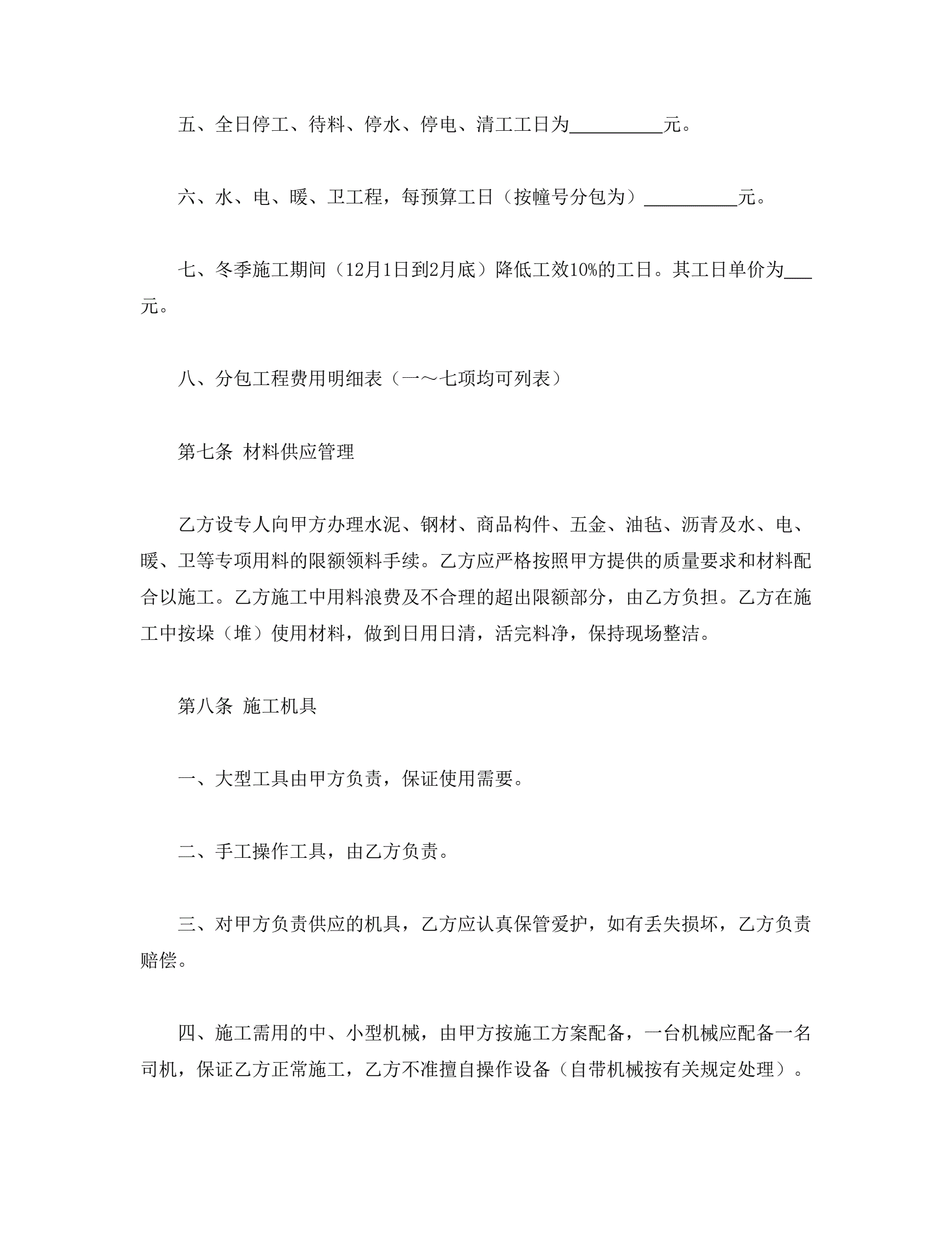 >建筑安装工程分包合同