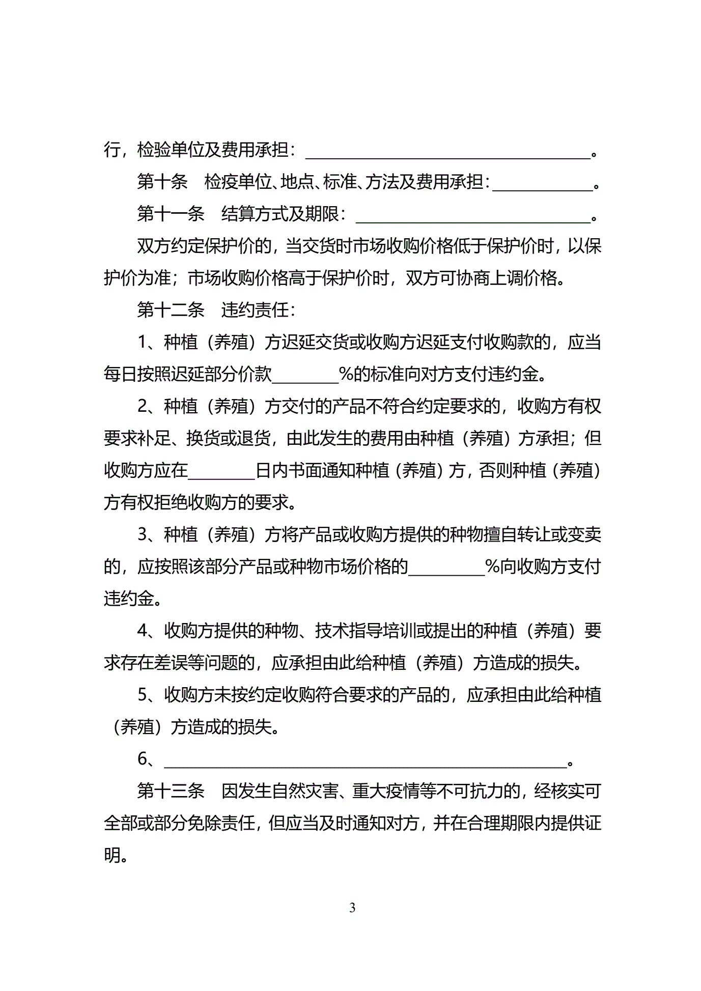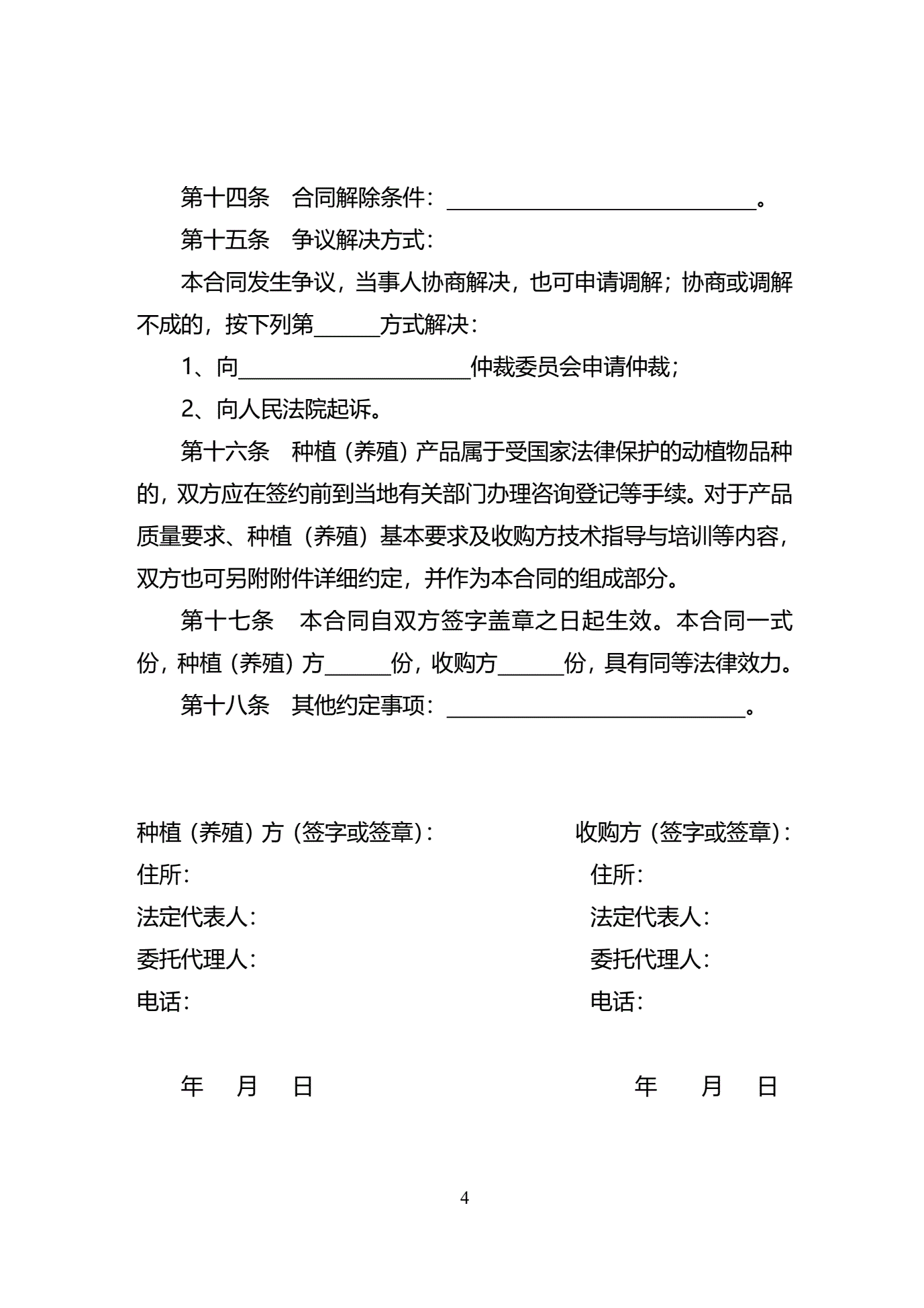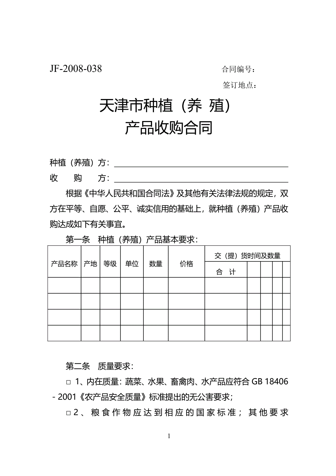 >天津市种植(养殖)产品收购合同