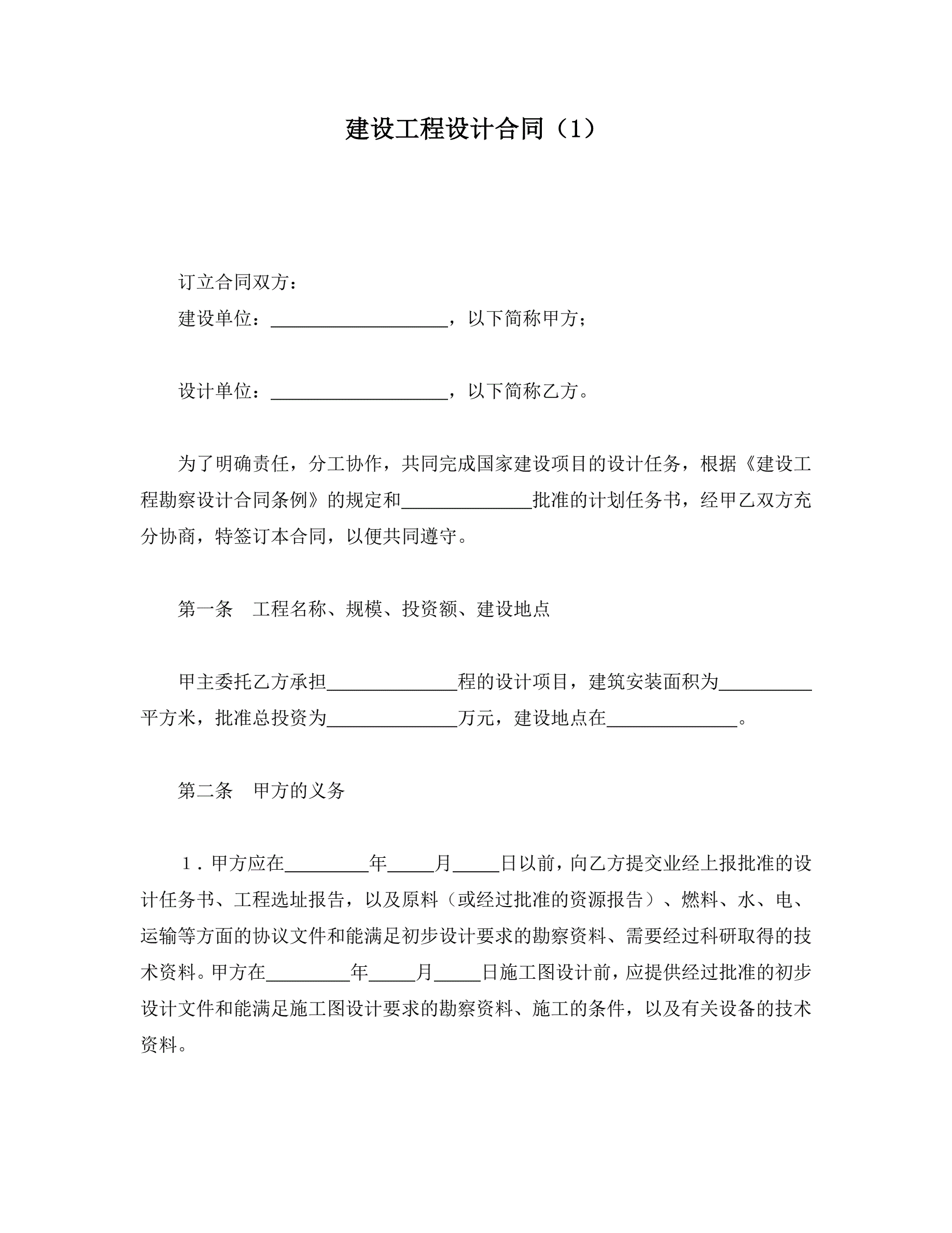>建设工程设计合同(1)