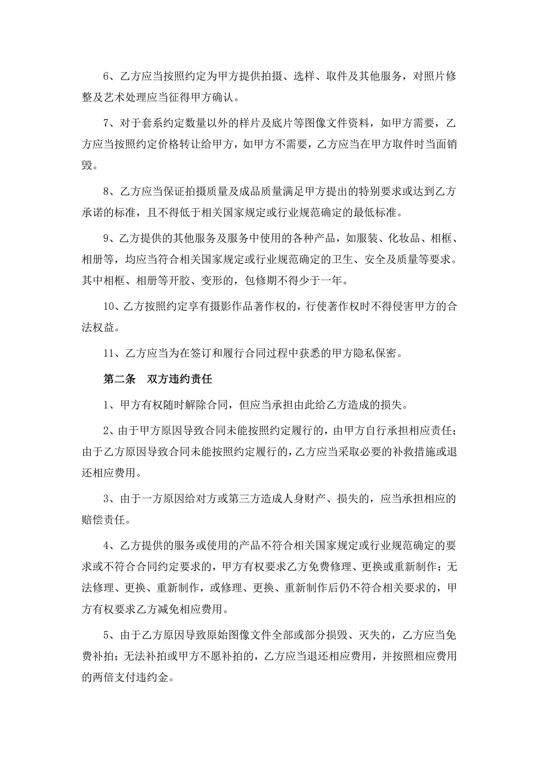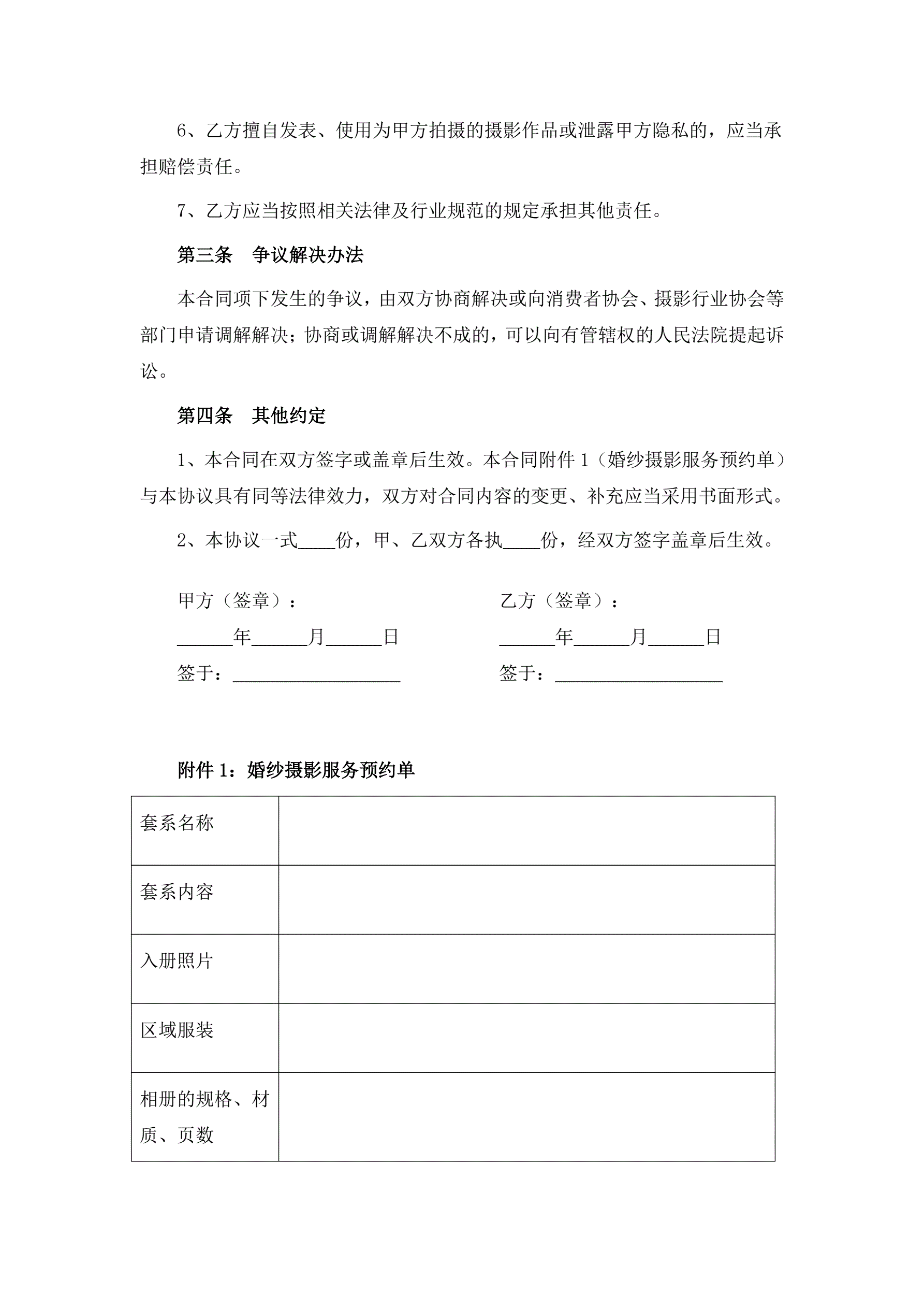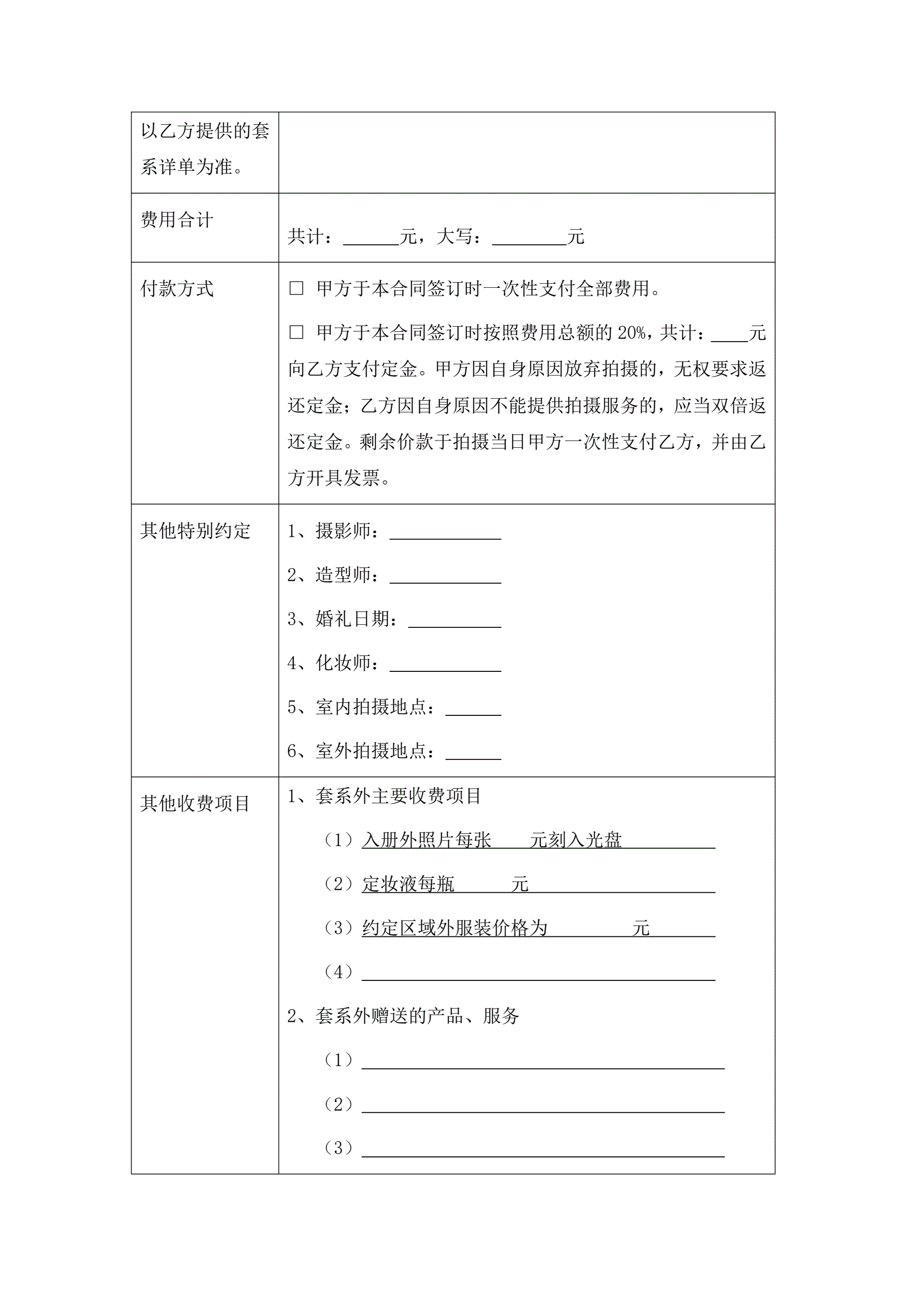 婚纱摄影服务合同
