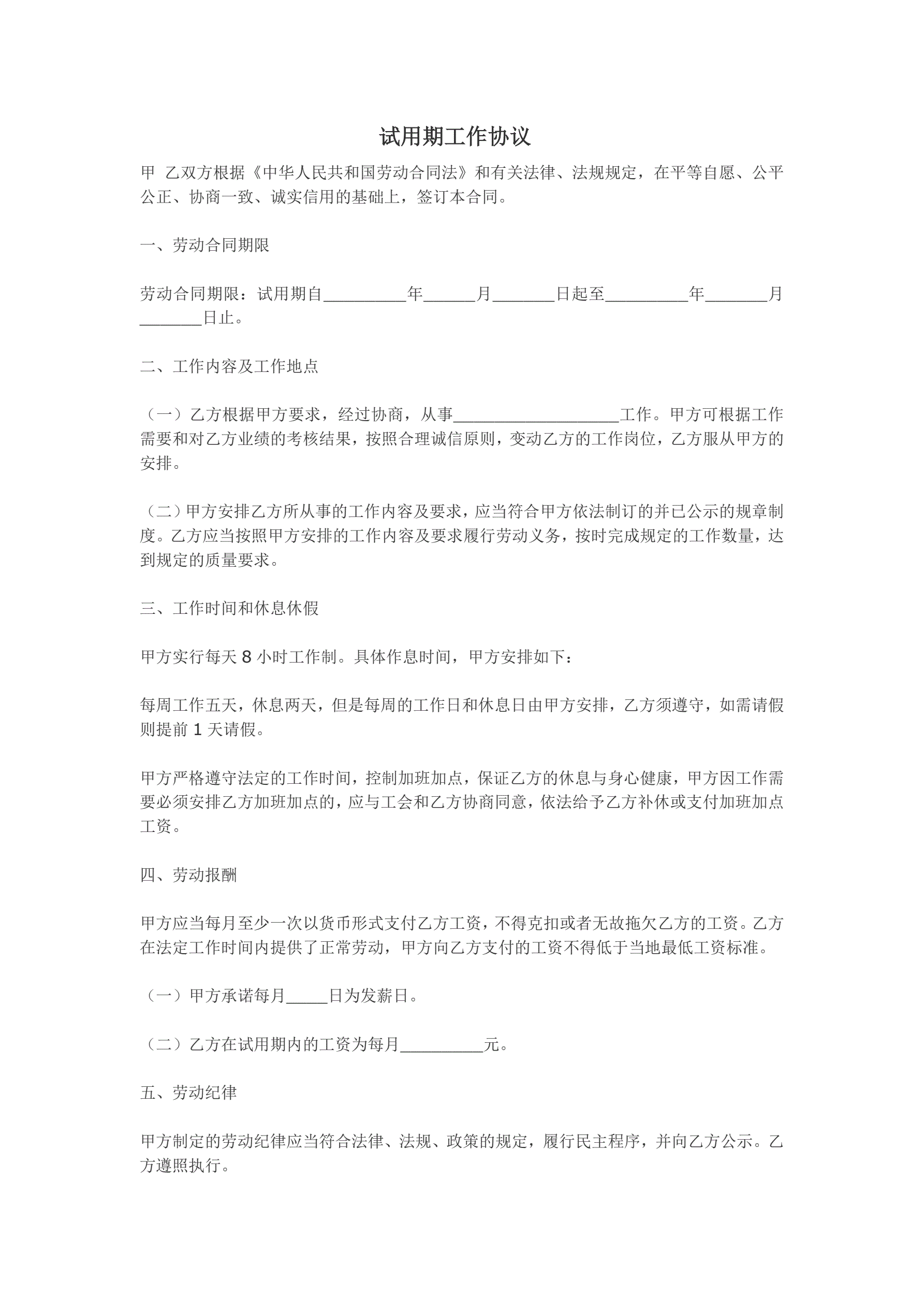 >试用期3个月工作协议