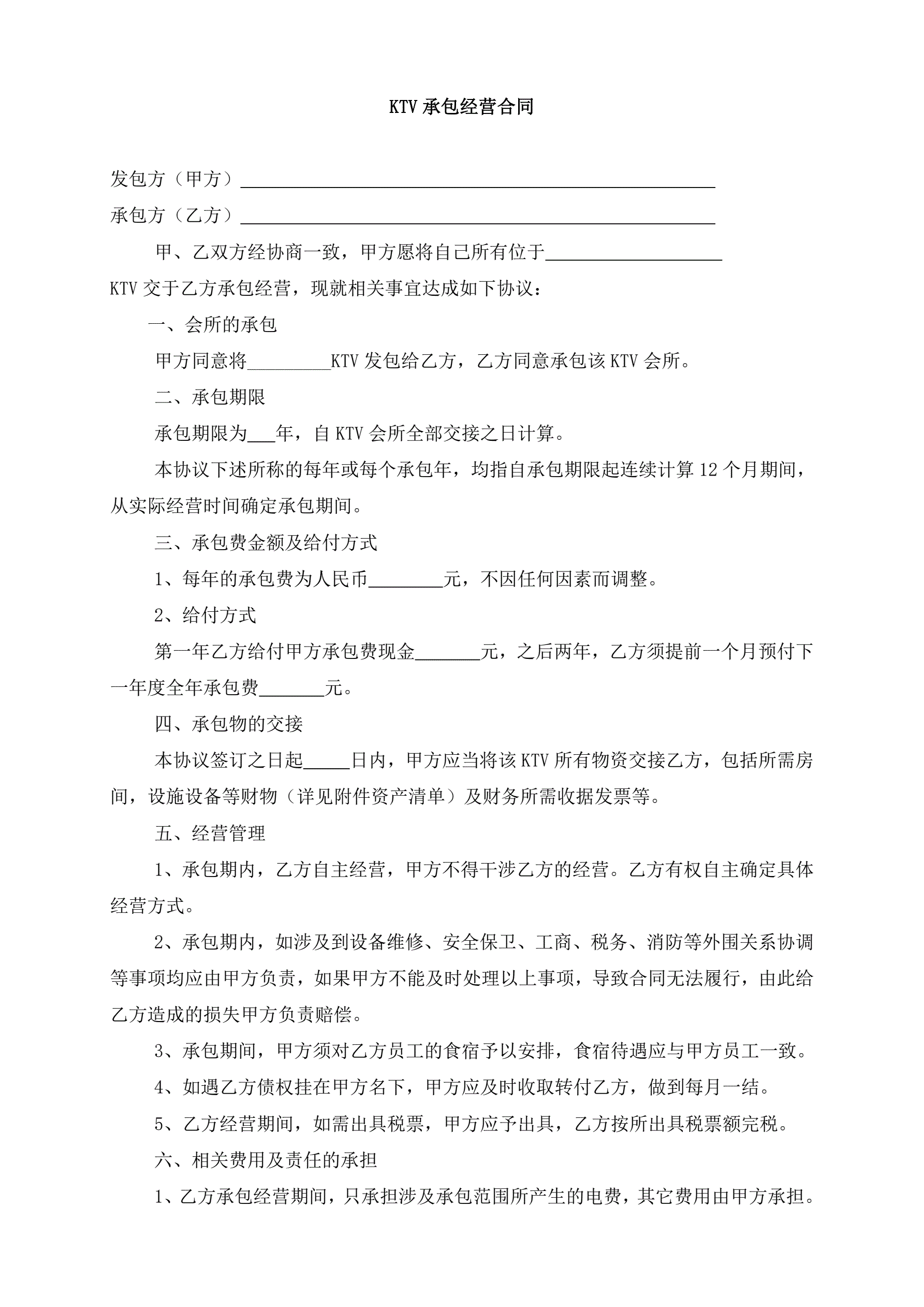 KTV承包经营合同