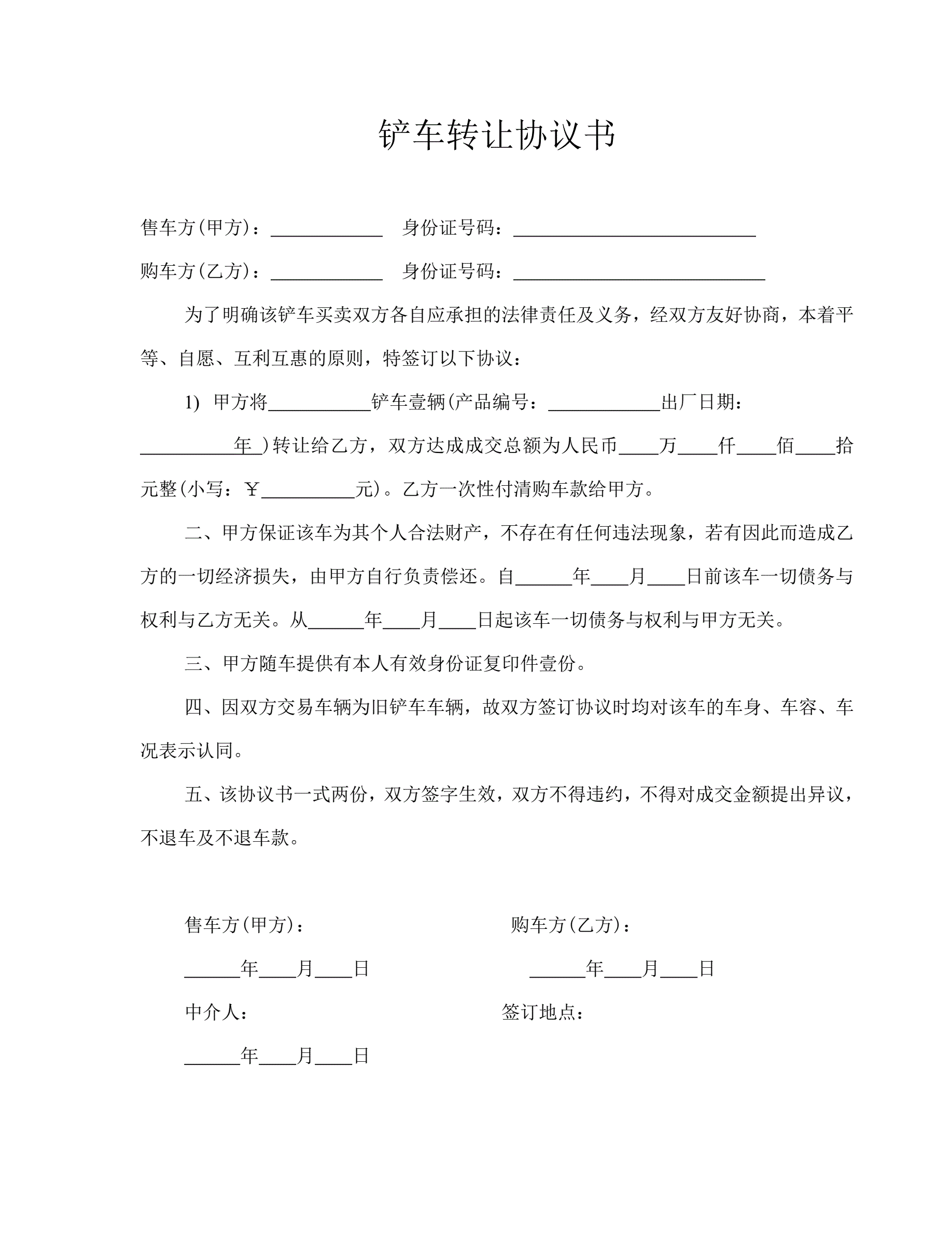 铲车转让协议书