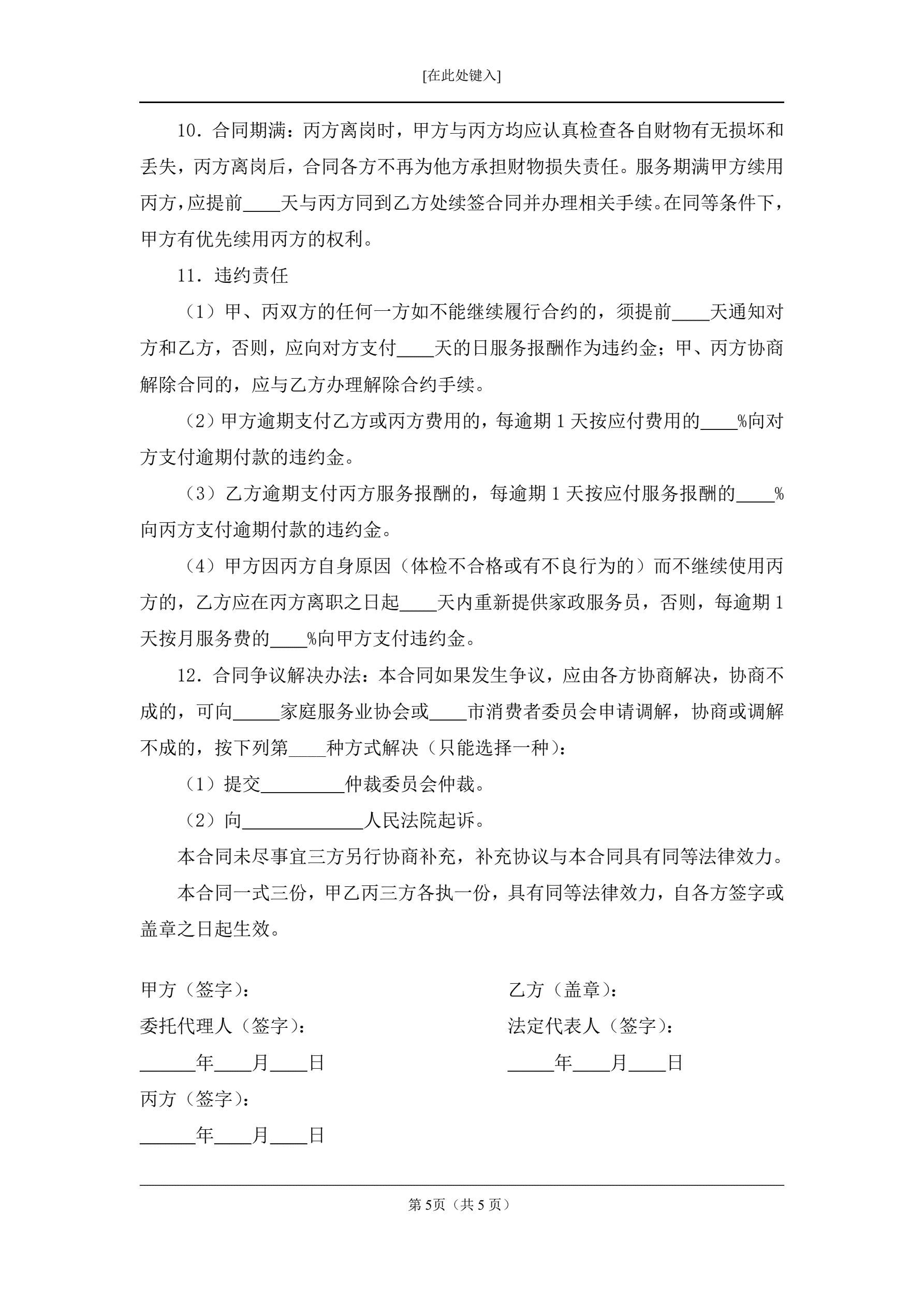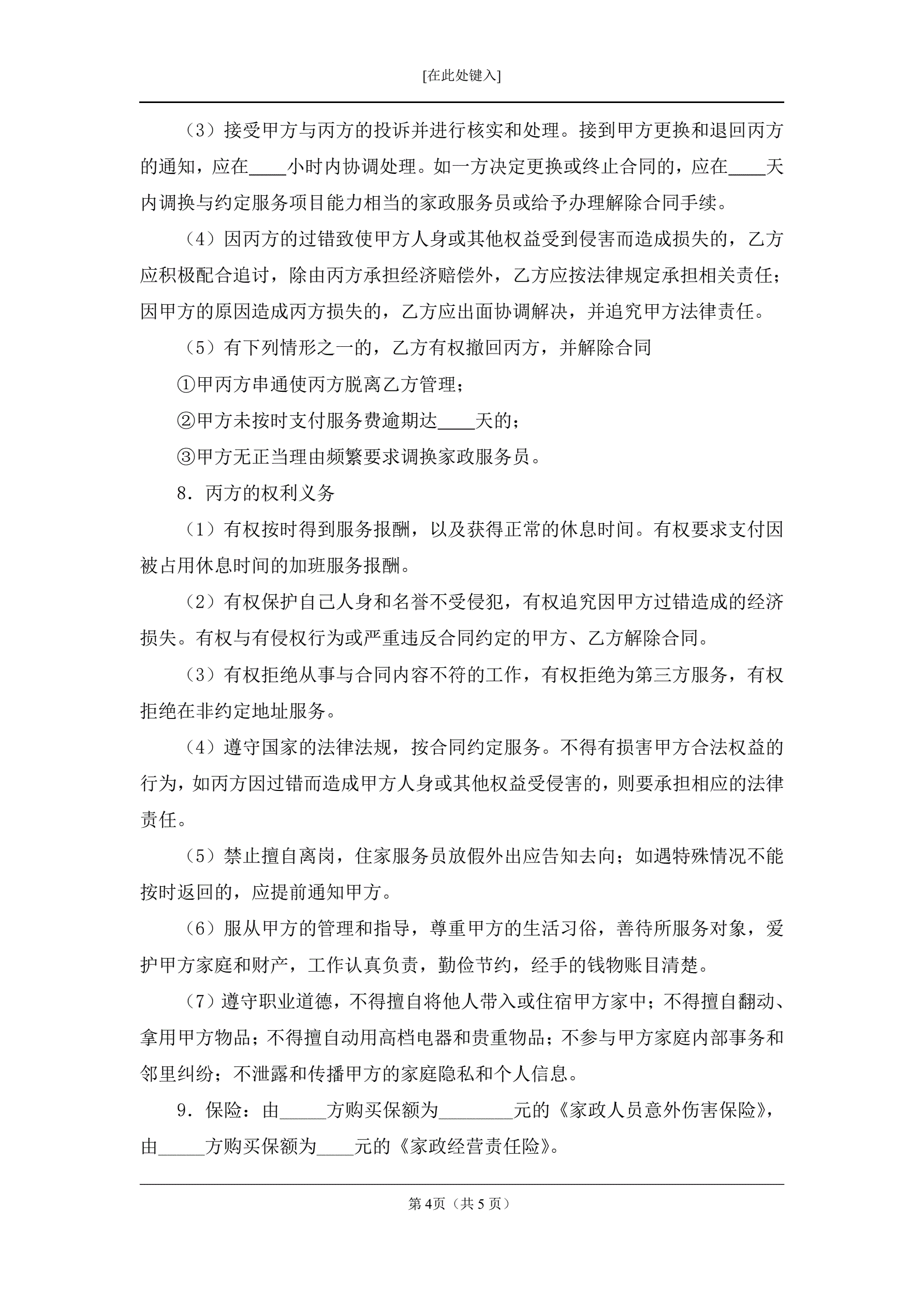 保姆合同