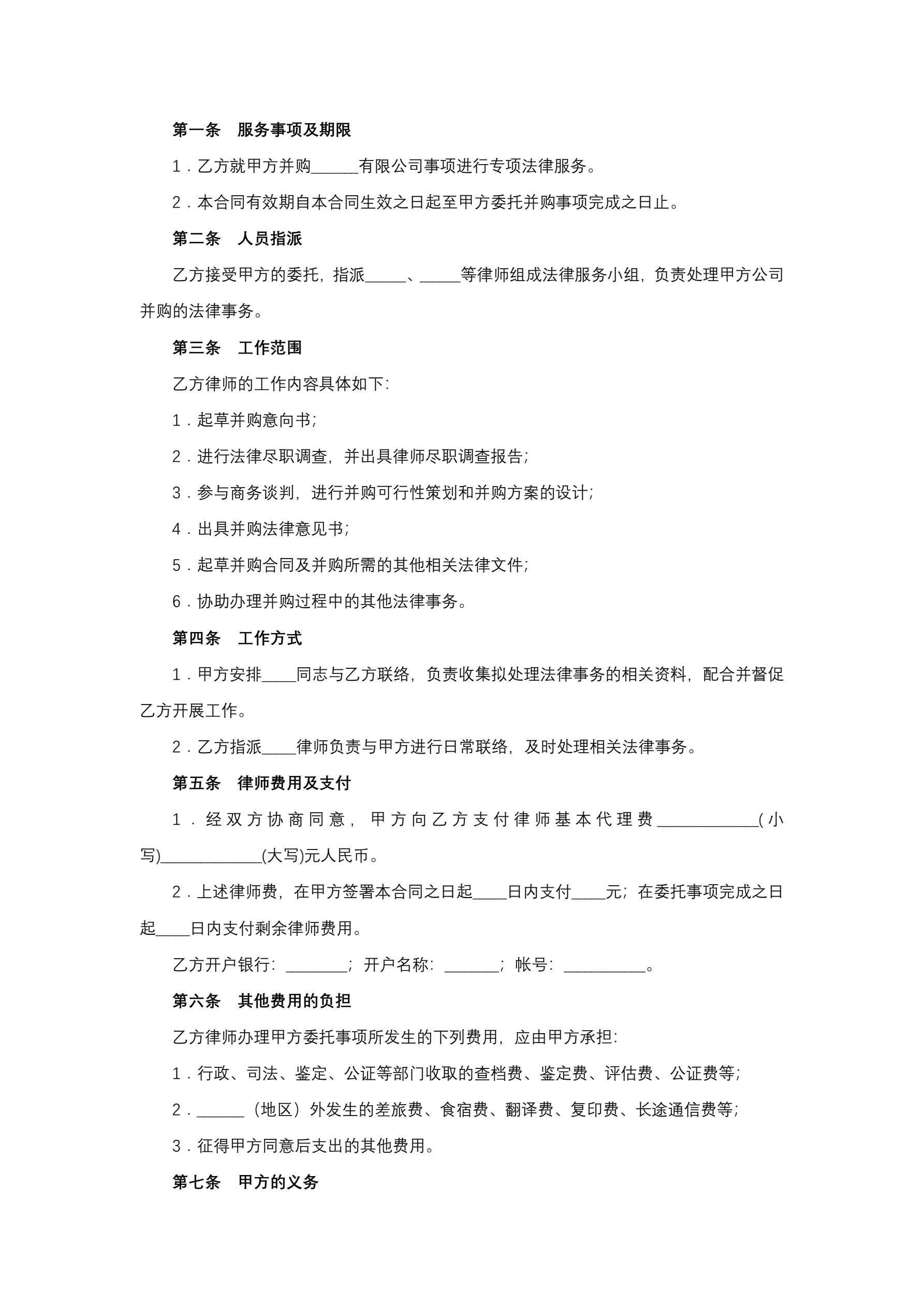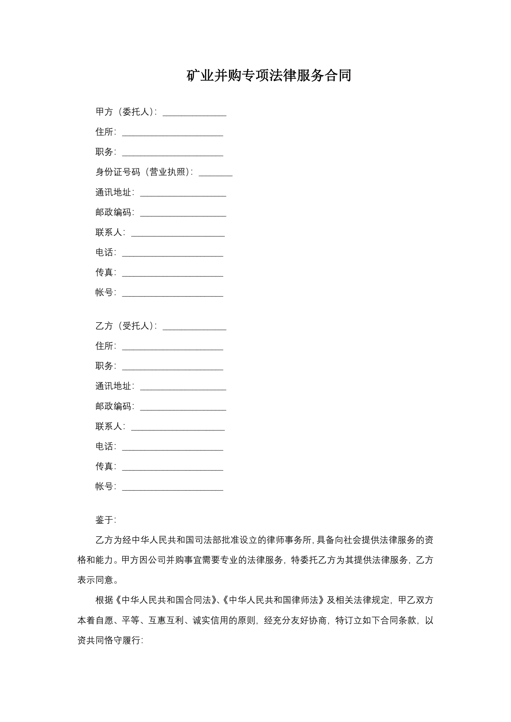 合同名称:矿业并购专项法律服务合同