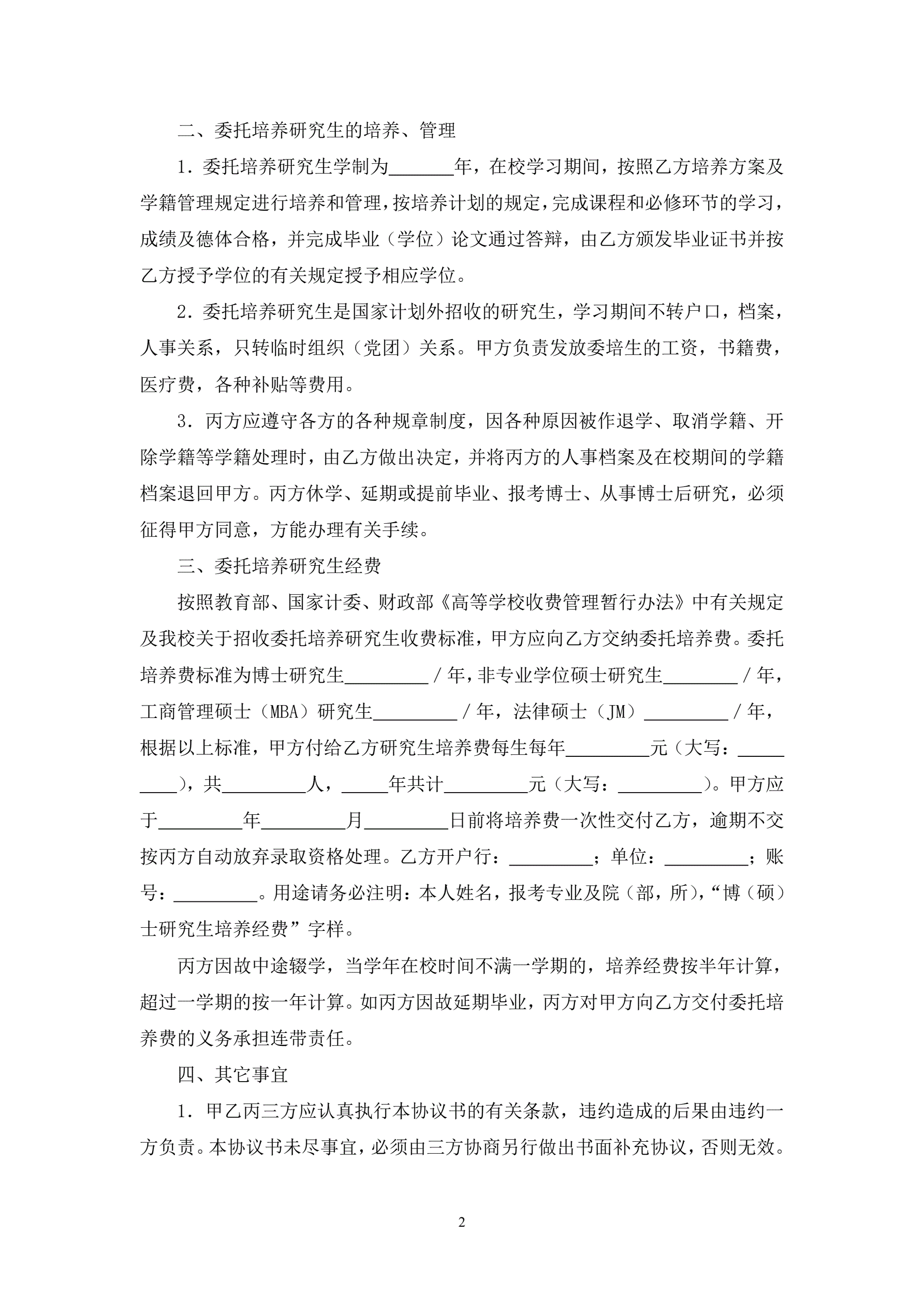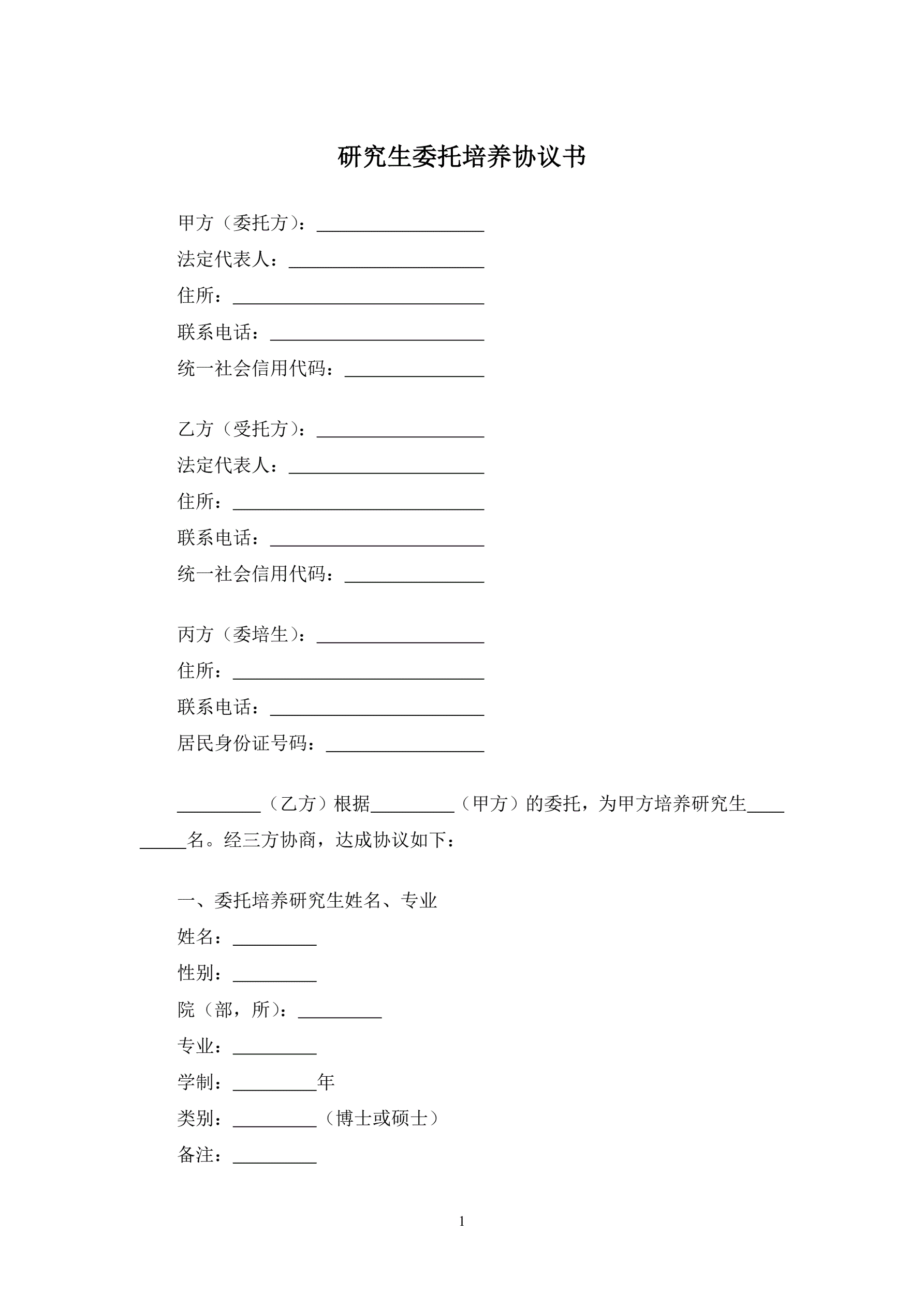 >研究生委托培养协议书