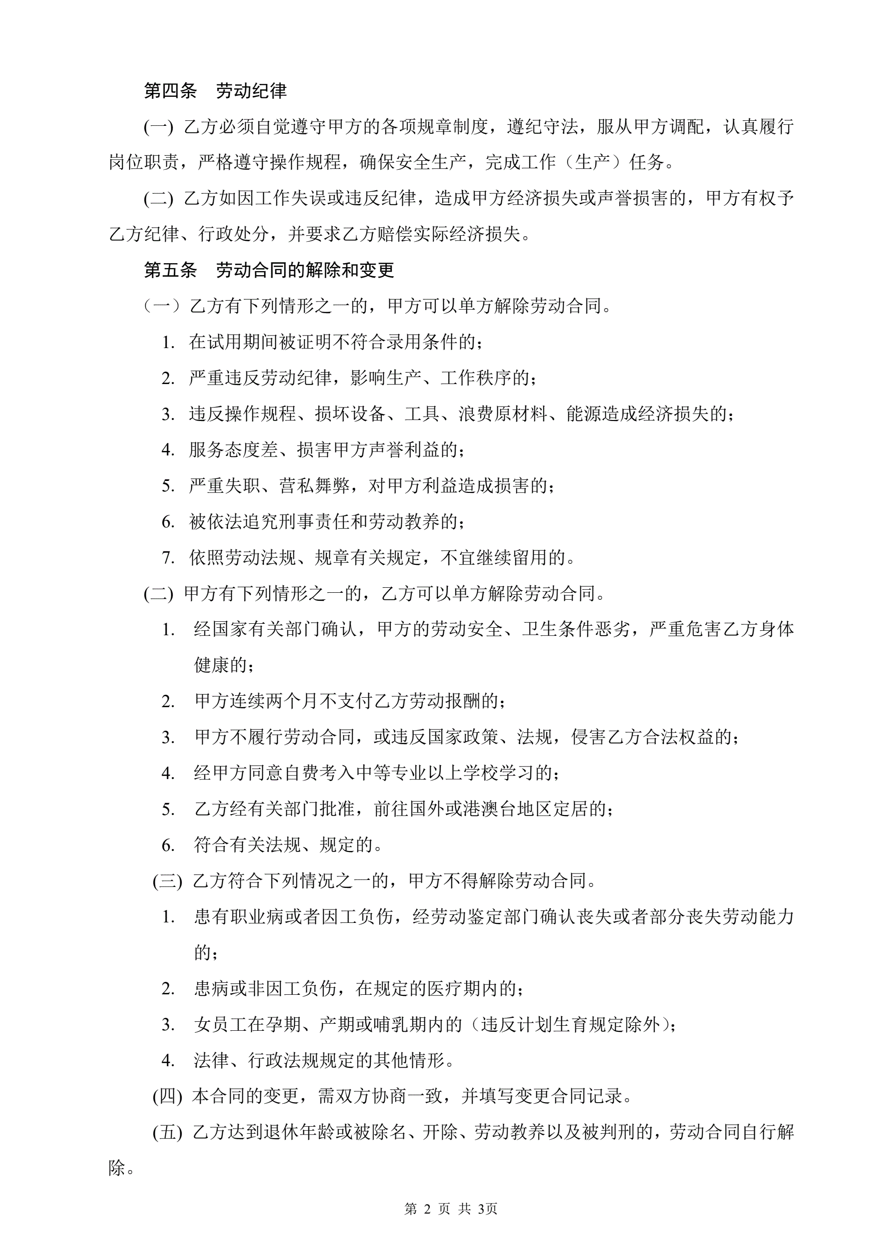 劳动合同书(3页)