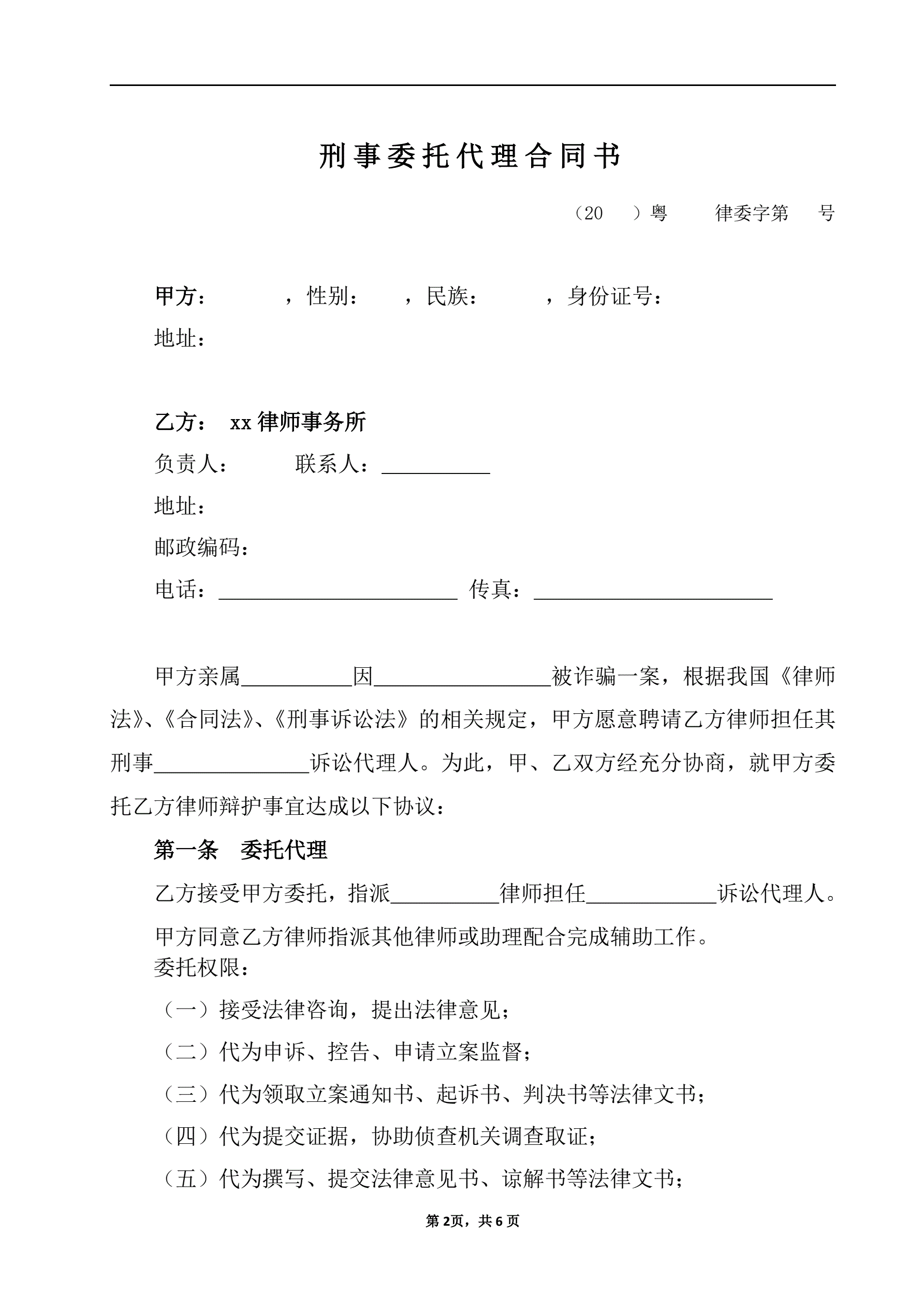 【刑事】委托代理合同