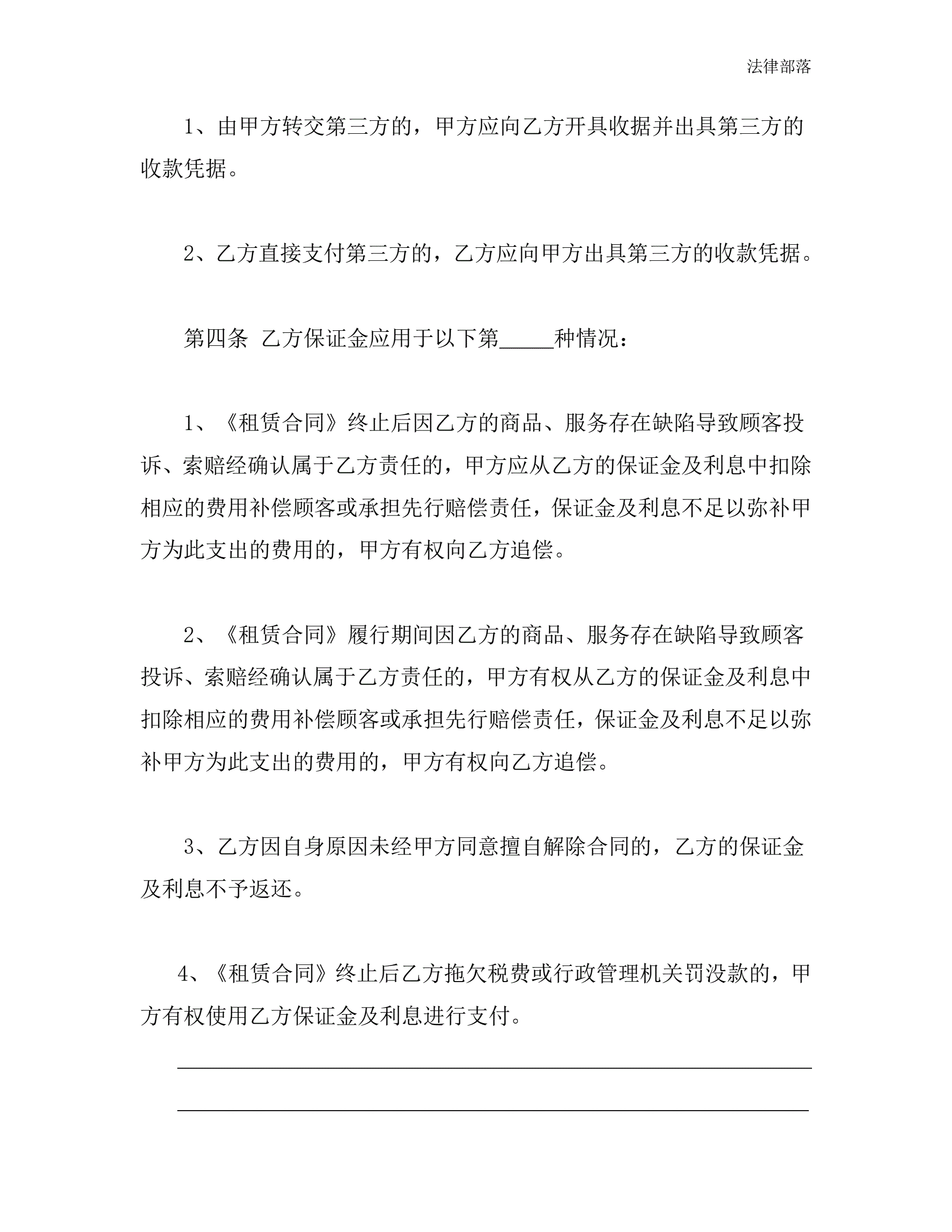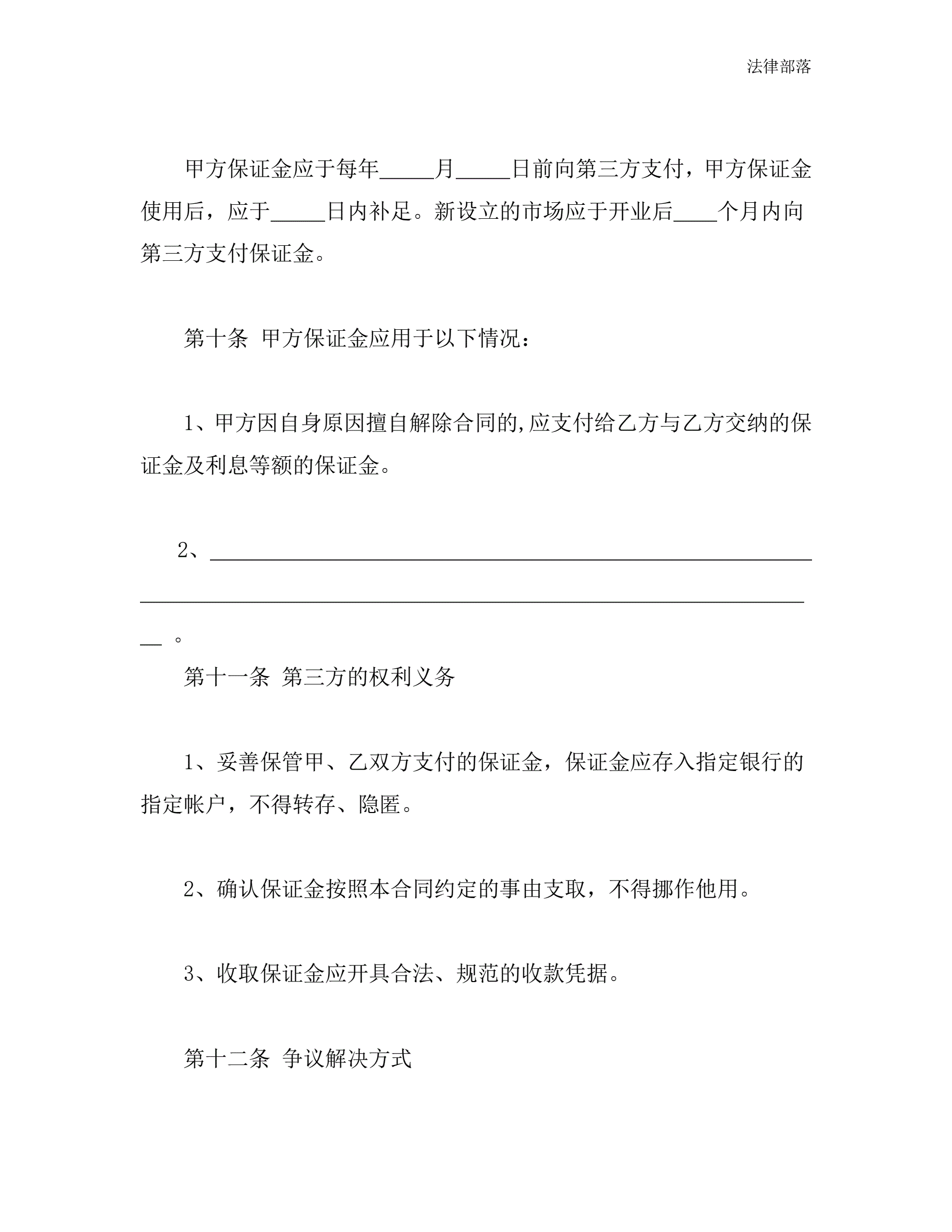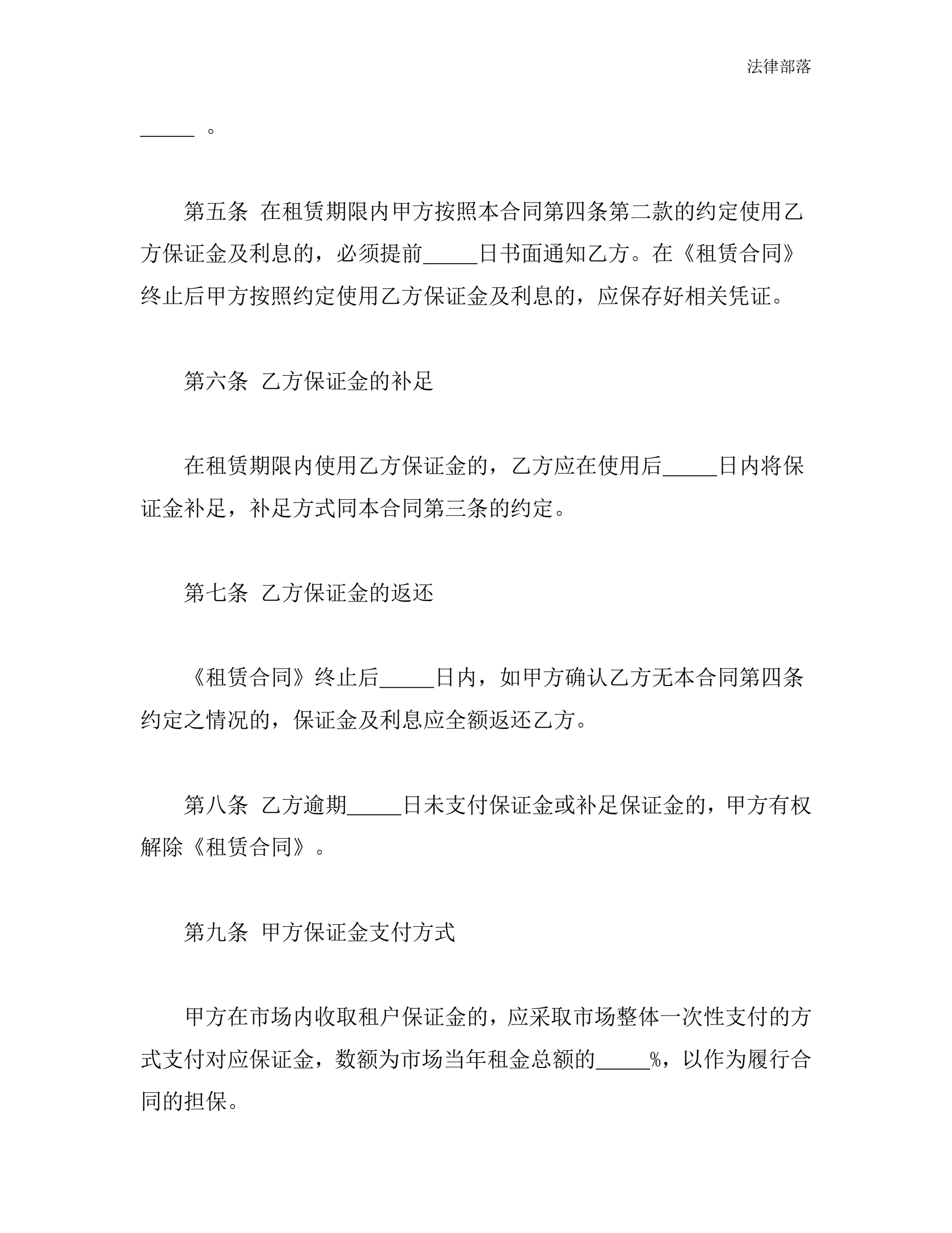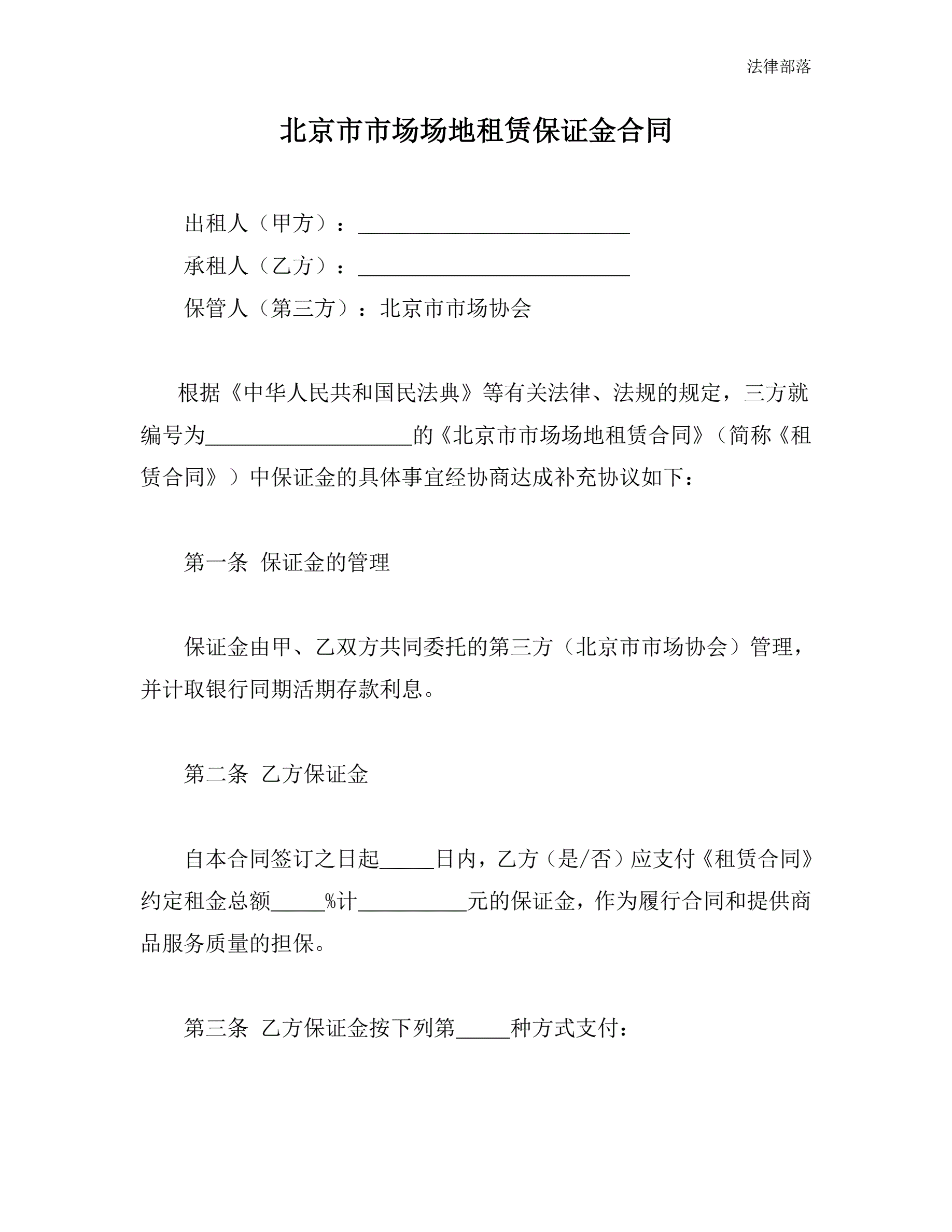 >北京市市场场地租赁保证金合同