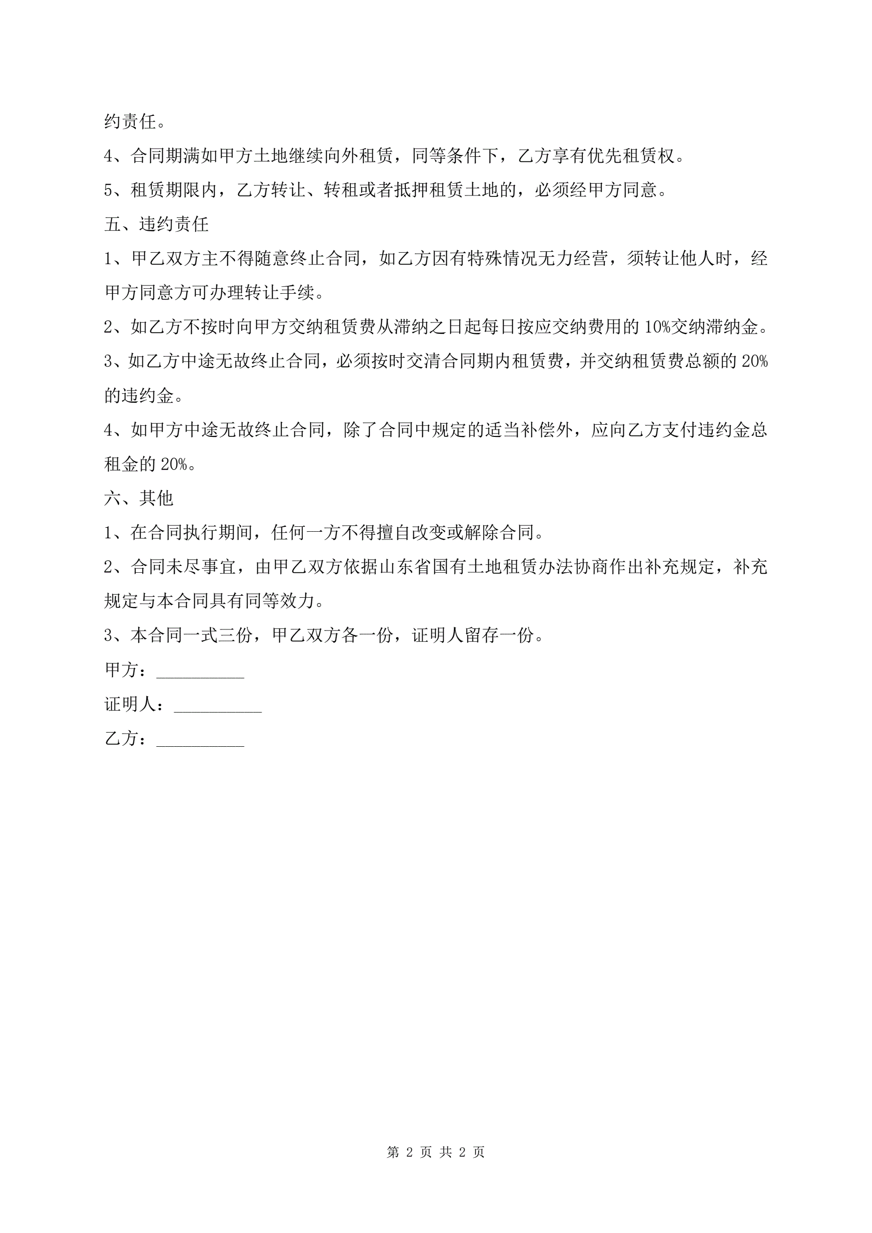 土地出租合同最新版