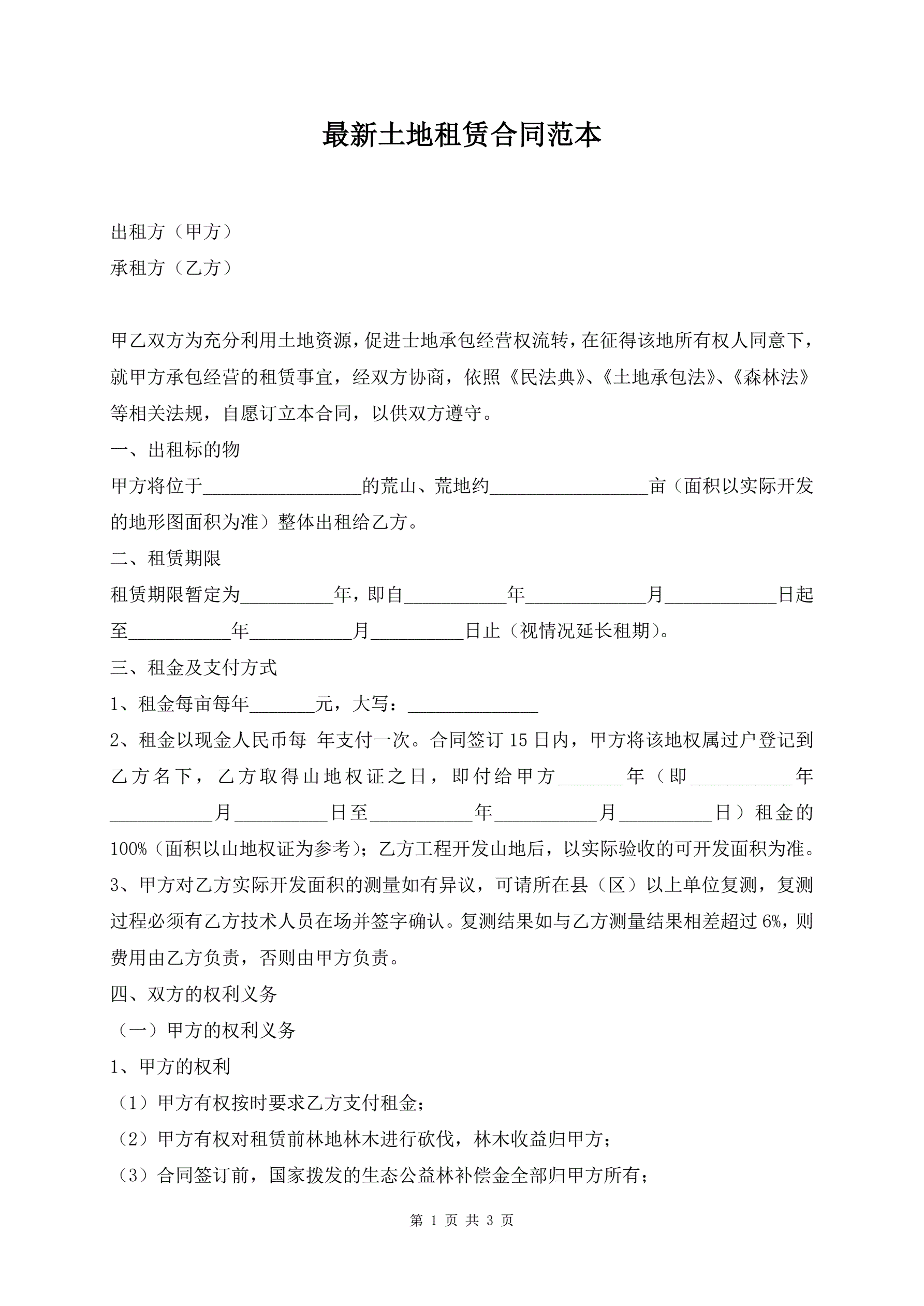 最新土地租赁合同范本